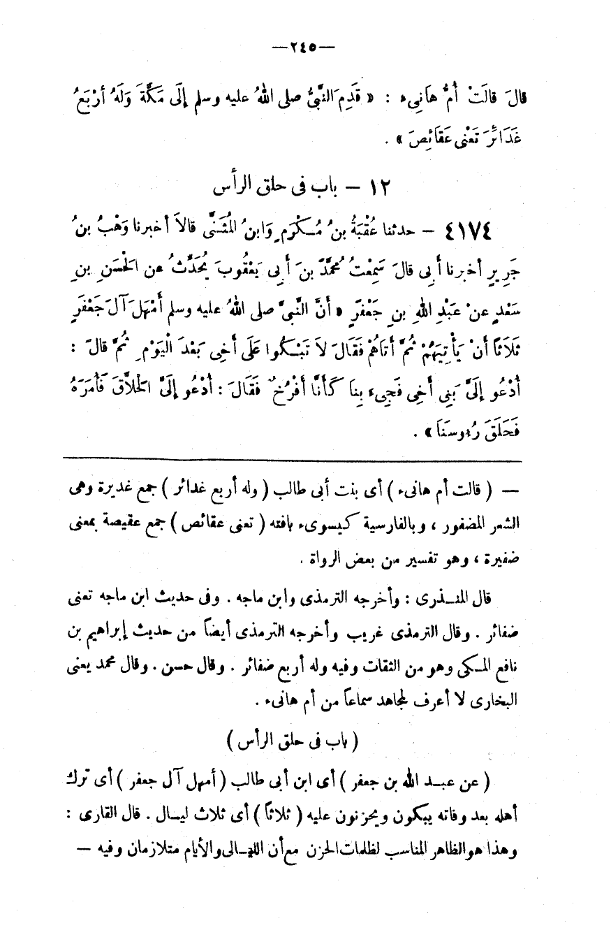 قَالَ الْمُنْذِرِيُّ : وَأَخْرَجَهُ التِّرْمِذِيّ وَابْن مَاجَهْ . وَفِي حَدِيث اِبْن مَاجَهْ تَعْنِي ضَفَائِر .