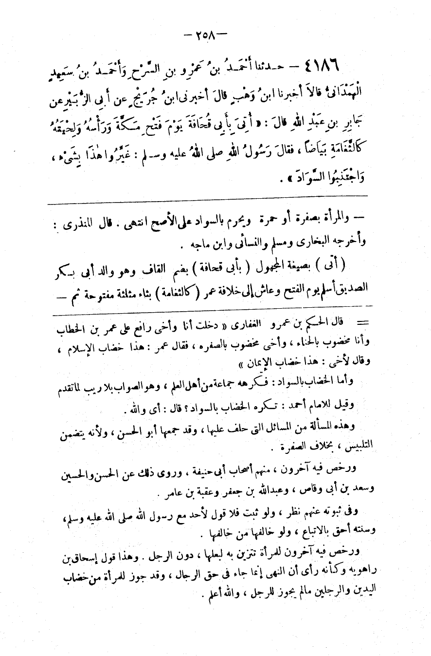 قال الحكم بن عمرو الغفاري دخلت أنا وأخي رافع على عمر بن الخطاب وأنا مخضوب بالحناء وأخي مخضوب بالصفرة فقال عمر هذا خضاب الإسلام وقال لأخي هذا خضاب الإيمان وأما الخضاب بالسواد فكرهه جماعة من أهل العلم وهو الصواب بلا ريب لما تقدم ويل للإمام أحمد تكره الخضاب بالسواد قال أي والله