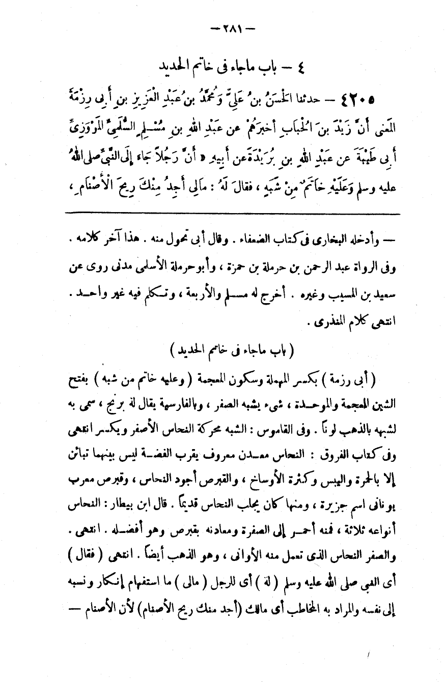 ( وَعَلَيْهِ خَاتَم مِنْ شَبَه )