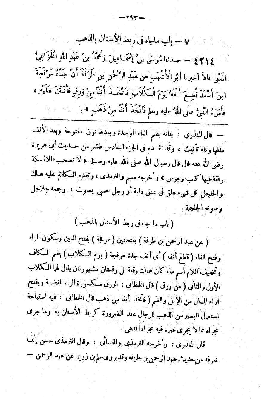 قَالَ الْمُنْذِرِيُّ : وَأَخْرَجَهُ التِّرْمِذِيّ وَالنَّسَائِيُّ ، وَقَالَ التِّرْمِذِيّ حَسَن إِنَّمَا نَعْرِفهُ مِنْ حَدِيث عَبْد الرَّحْمَن بْنِ طَرَفَة وَقَدْ رَوَى سَلْم بْن زَرِير عَنْ عَبْد الرَّحْمَن@