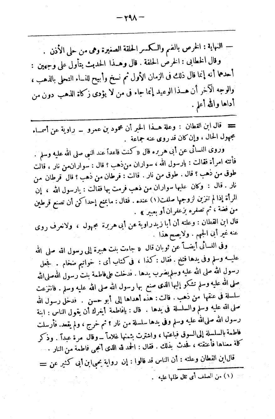 قال وكان عليها سواران من ذهب فرمت بها فقالت يارسول الله إن المرأة إذا لم تتزين لزوجها صلفت 1 عنده