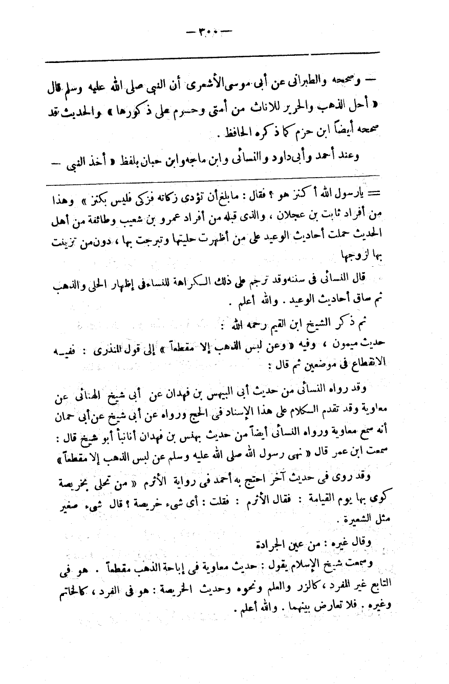 وسمعت شيخ الإسلام يقول حديث معاوية في إباحة الذهب مقطعا