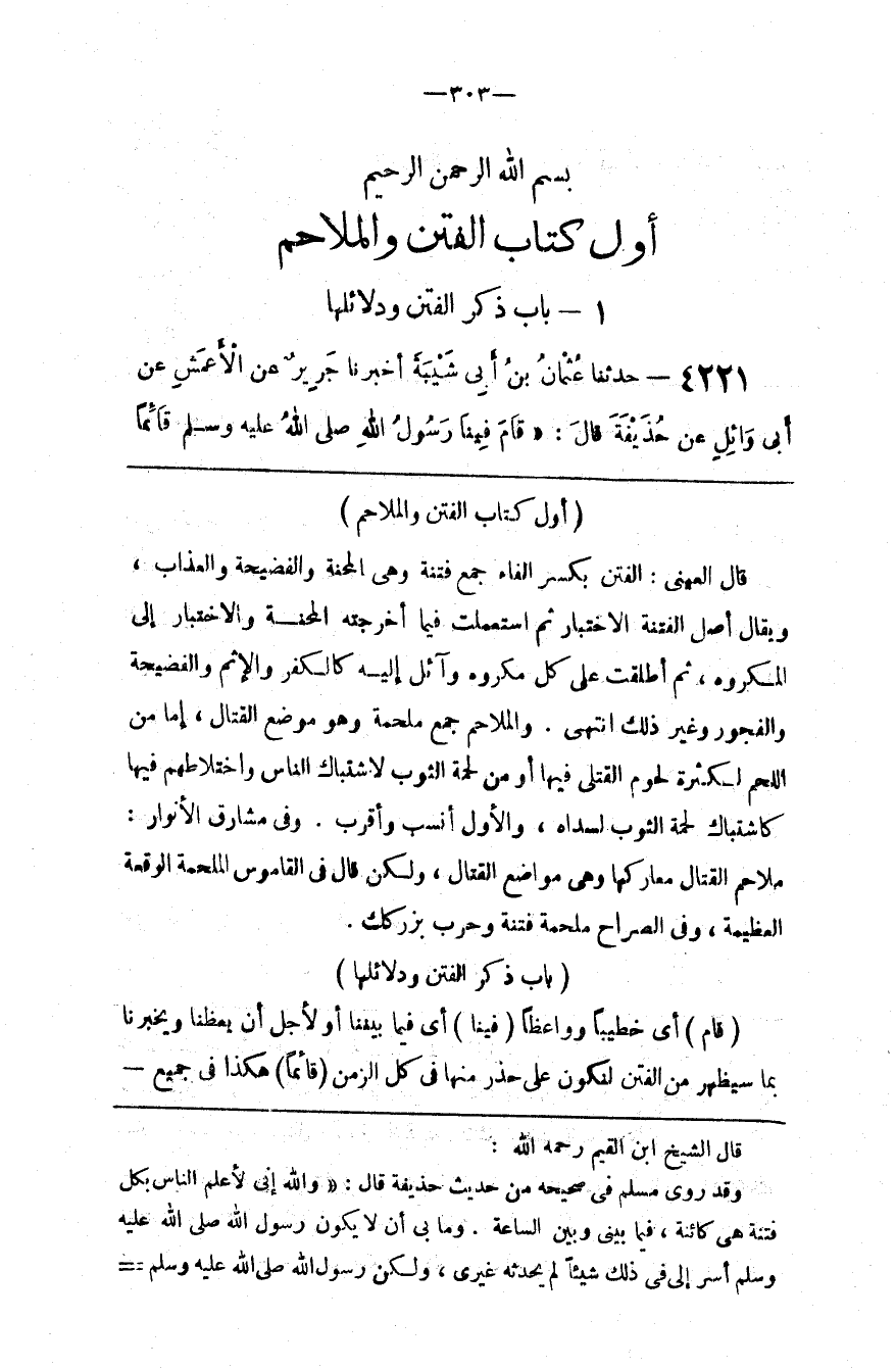 قال الشيخ ابن القيم رحمه الله وقد روى مسلم في صحيحه من حديث حذيفة قال و الله إني لأعلم الناس بكل فتنة هي كائنة فيما بيني وبين الساعة