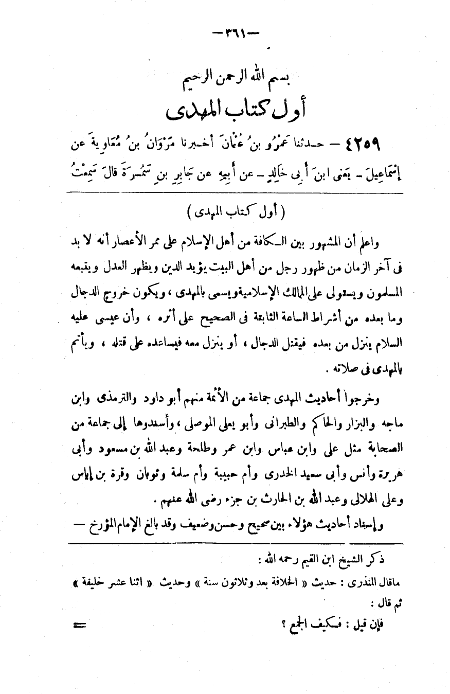 ذكر الشيخ ابن القيم رحمه الله قال المنذري حديث الخلافة بعد وثلاثون سنة وحديث اثنا عشر خليفة ثم قال فإن قيل فكيف الجمع