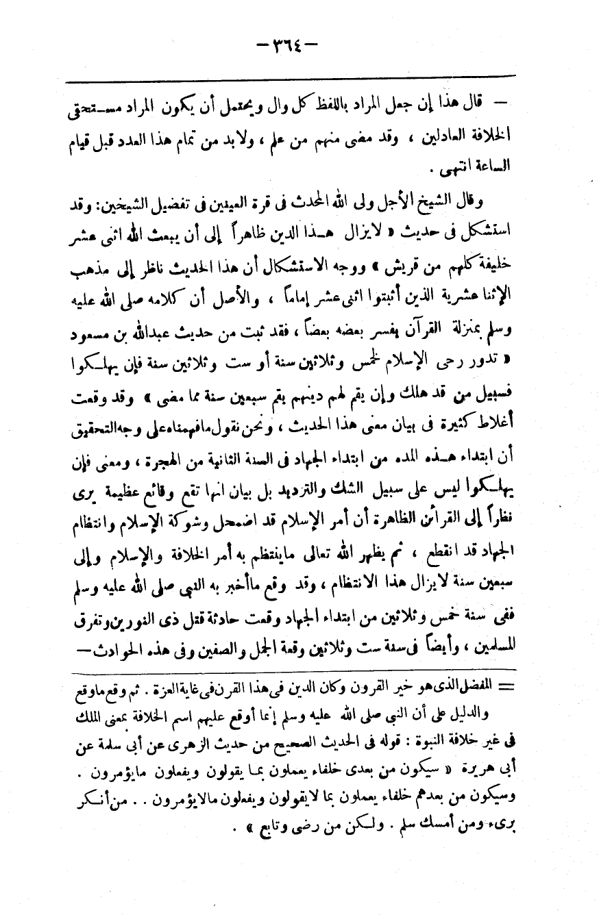 ثم وقع ما وقع والدليل على أن النبي صلى الله عليه و سلم إنما أوقع عليهم اسم الخلافة بمعنى الملك في غير خلافة النبوة قوله في الحديث الصحيح من صديق الزهري عن أبي سلمة عن أبي هريرة وسيكون من بعدي خلفاء يعملون بما يقولون ويفعلون ما يؤمرون وسيكون من بعدهم خلفاء يعملون بما لا يقولون ويفعلون ما لا يؤمرون من أنكر برىء ومن أمسك سلم ولكن من رضي وتابع