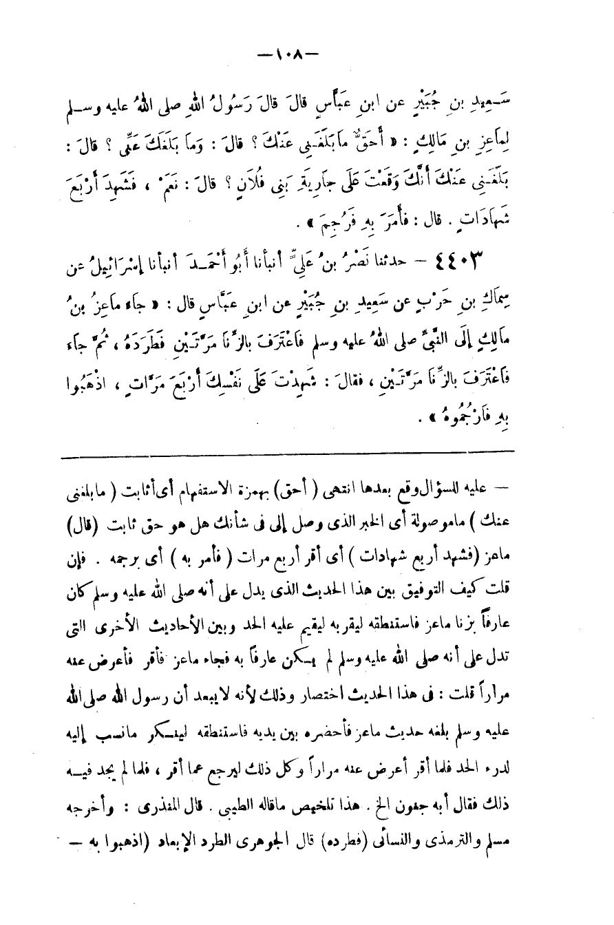 : أَيْ بِرَجْمِهِ . فَإِنْ قُلْت كَيْفَ التَّوْفِيق بَيْن هَذَا الْحَدِيث الَّذِي يَدُلّ عَلَى أَنَّهُ صَلَّى اللَّه عَلَيْهِ وَسَلَّمَ كَانَ عَارِفًا بِزِنَا مَاعِز فَاسْتَنْطَقَهُ لِيُقِرّ بِهِ لِيُقِيمَ عَلَيْهِ الْحَدّ وَبَيْن الْأَحَادِيث الْأُخْرَى الَّتِي تَدُلّ عَلَى أَنَّهُ صَلَّى اللَّه عَلَيْهِ وَسَلَّمَ لَمْ يَكُنْ عَارِفًا بِهِ فَجَاءَ مَاعِز فَأَقَرَّ فَأَعْرَضَ عَنْهُ مِرَارًا قُلْت : فِي هَذَا الْحَدِيث اِخْتِصَار وَذَلِكَ لِأَنَّهُ لَا يَبْعُد أَنَّ رَسُول اللَّه صَلَّى اللَّه عَلَيْهِ وَسَلَّمَ بَلَغَهُ حَدِيث مَاعِز فَأَحْضَرَهُ بَيْن يَدَيْهِ فَاسْتَنْطَقَهُ لِيُنْكِر مَا نُسِبَ إِلَيْهِ لِدَرْءِ الْحَدّ فَلَمَّا أَقَرَّ أَعْرَضَ عَنْهُ مِرَارًا وَكُلّ ذَلِكَ لِيَرْجِع عَمَّا أَقَرَّ ، فَلَمَّا لَمْ يَجِد فِيهِ ذَلِكَ فَقَالَ أَبِهِ جُنُون إِلَخْ . هَذَا تَلْخِيص مَا قَالَهُ الطِّيبِيّ .