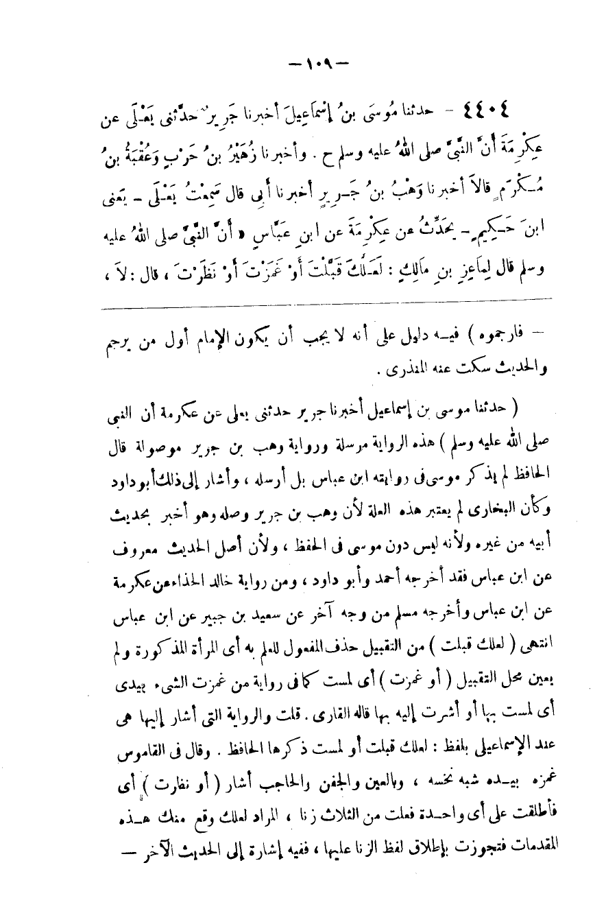 : هَذِهِ الرِّوَايَة مُرْسَلَة وَرِوَايَة وَهْب بْن جَرِير مَوْصُولَة قَالَ الْحَافِظ لَمْ يَذْكُر مُوسَى فِي رِوَايَته اِبْن عَبَّاس بَلْ أَرْسَلَهُ ، وَأَشَارَ إِلَى ذَلِكَ أَبُو دَاوُدَ وَكَأَنَّ الْبُخَارِيّ لَمْ يَعْتَبِر هَذِهِ الْعِلَّة لِأَنَّ وَهْب بْن جَرِير وَصَلَهُ وَهُوَ أَخْبَر بِحَدِيثِ أَبِيهِ مِنْ غَيْره وَلِأَنَّهُ لَيْسَ دُون مُوسَى فِي الْحِفْظ ؛ وَلِأَنَّ أَصْل الْحَدِيث مَعْرُوف عَنْ اِبْن عَبَّاس فَقَدْ أَخْرَجَهُ أَحْمَد وَأَبُو دَاوُدَ ، وَمِنْ رِوَايَة خَالِد الْحَذَّاء عَنْ عِكْرِمَة عَنْ اِبْن عَبَّاس وَأَخْرَجَهُ مُسْلِم مِنْ وَجْه آخَر عَنْ سَعِيد بْن جُبَيْر عَنْ اِبْن عَبَّاس اِنْتَهَى