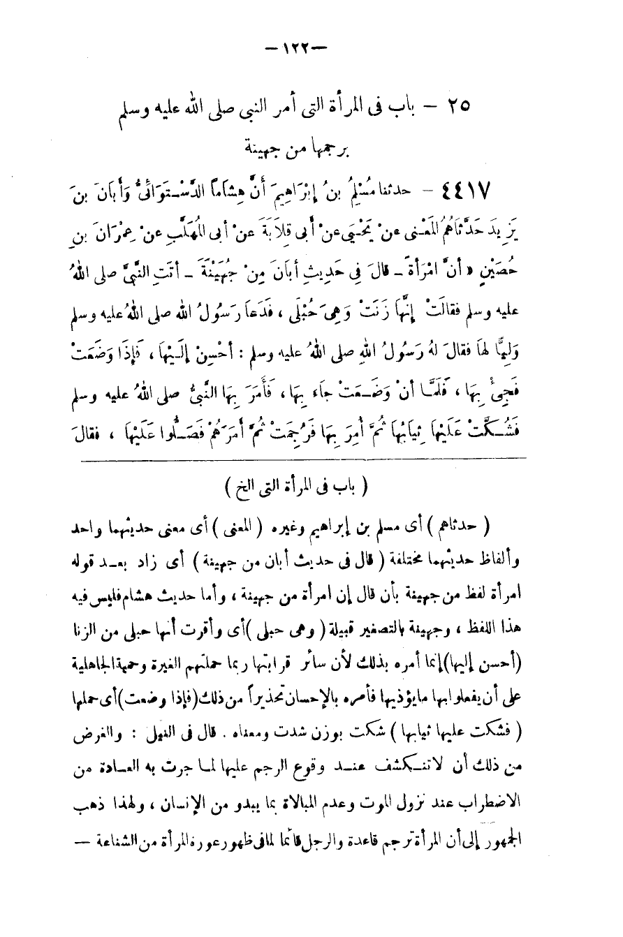 : أَيْ زَادَ بَعْد قَوْله اِمْرَأَة لَفْظ مِنْ جُهَيْنَة بِأَنْ قَالَ إِنَّ اِمْرَأَة مِنْ جُهَيْنَة ، وَأَمَّا حَدِيث هِشَام فَلَيْسَ فِيهِ هَذَا اللَّفْظ ، وَجُهَيْنَة بِالتَّصْغِيرِ قَبِيلَة