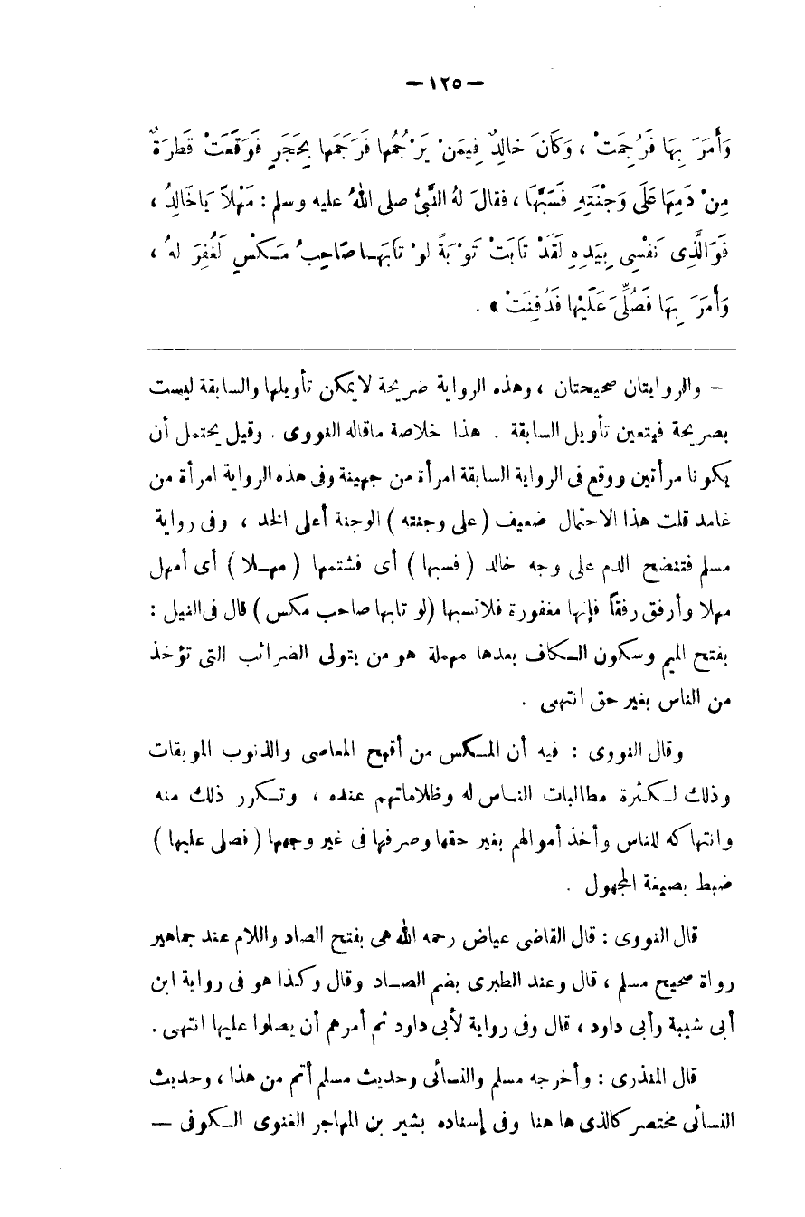 وَالرِّوَايَتَانِ صَحِيحَتَانِ ، وَهَذِهِ الرِّوَايَة صَرِيحَة لَا يُمْكِن تَأْوِيلهَا وَالسَّابِقَة لَيْسَتْ بِصَرِيحَةٍ فَيَتَعَيَّن تَأْوِيل السَّابِقَة . هَذَا خُلَاصَة مَا قَالَهُ النَّوَوِيّ . وَقِيلَ يَحْتَمِل أَنْ يَكُونَا مَرْأَتَيْنِ وَوَقَعَ فِي الرِّوَايَة السَّابِقَة اِمْرَأَة مِنْ جُهَيْنَة وَفِي هَذِهِ الرِّوَايَة اِمْرَأَة مِنْ غَامِد قُلْت هَذَا الِاحْتِمَال ضَعِيف