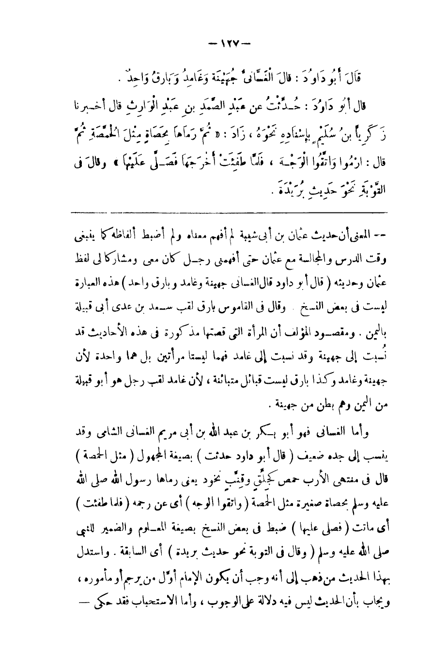( قَالَ أَبُو دَاوُدَ قَالَ الْغَسَّانِيّ جُهَيْنَة وَغَامِد وَبَارِق وَاحِد )