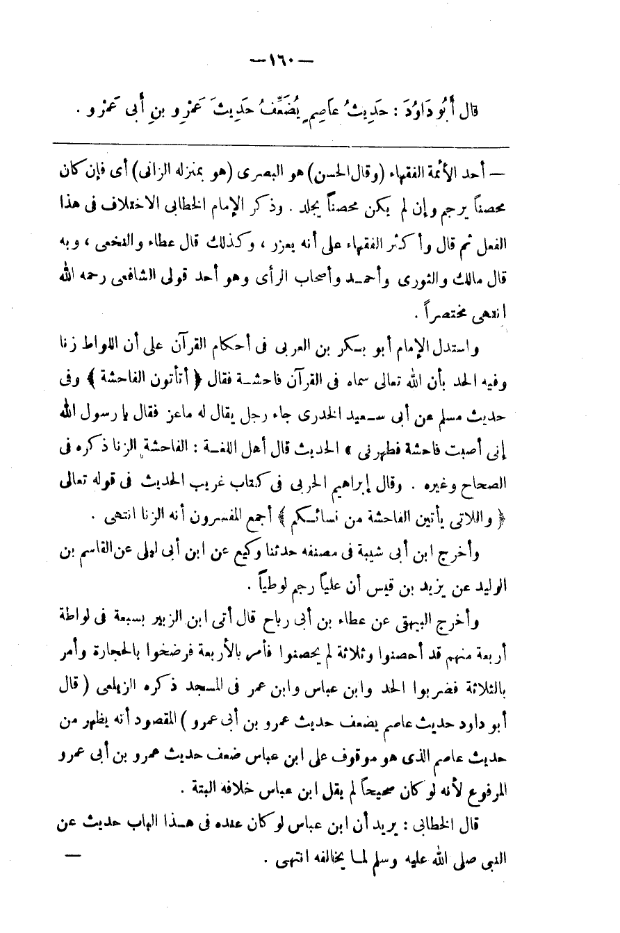 وَأَخْرَجَ الْبَيْهَقِيُّ عَنْ عَطَاء بْن أَبِي رَبَاح قَالَ : أُتِيَ اِبْن الزُّبَيْر بِسَبْعَةٍ فِي لِوَاطَة أَرْبَعَة مِنْهُمْ قَدْ أَحْصَنُوا وَثَلَاثَة لَمْ يُحْصِنُوا فَأَمَرَ بِالْأَرْبَعَةِ فَرُضِخُوا بِالْحِجَارَةِ وَأَمَرَ بِالثَّلَاثَةِ فَضُرِبُوا الْحَدّ وَابْن عَبَّاس وَابْن عُمَر فِي الْمَسْجِد ذَكَرَهُ الزَّيْلَعِيُّ