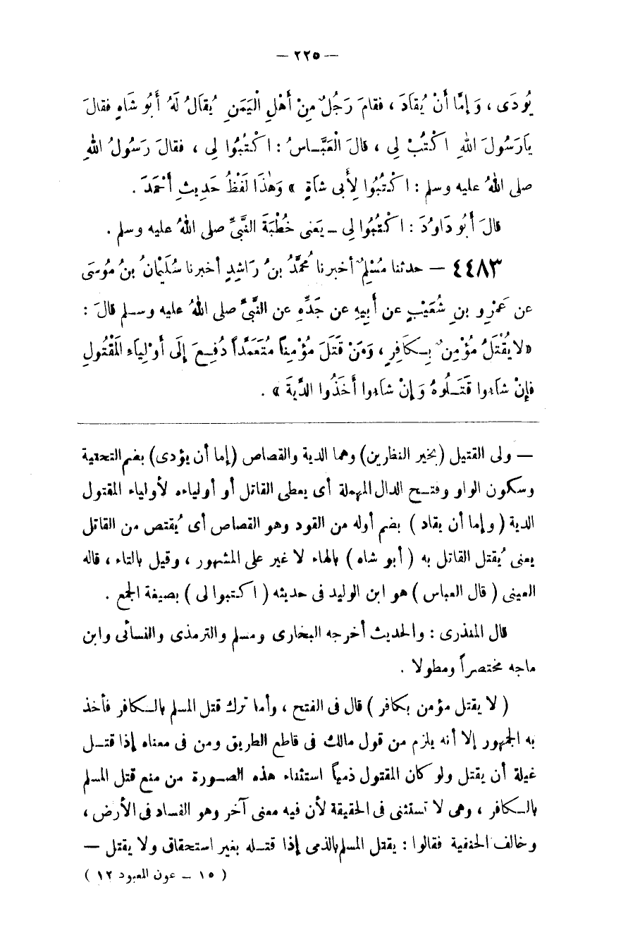 ( لَا يُقْتَل مُؤْمِنٌ بِكَافِرٍ )