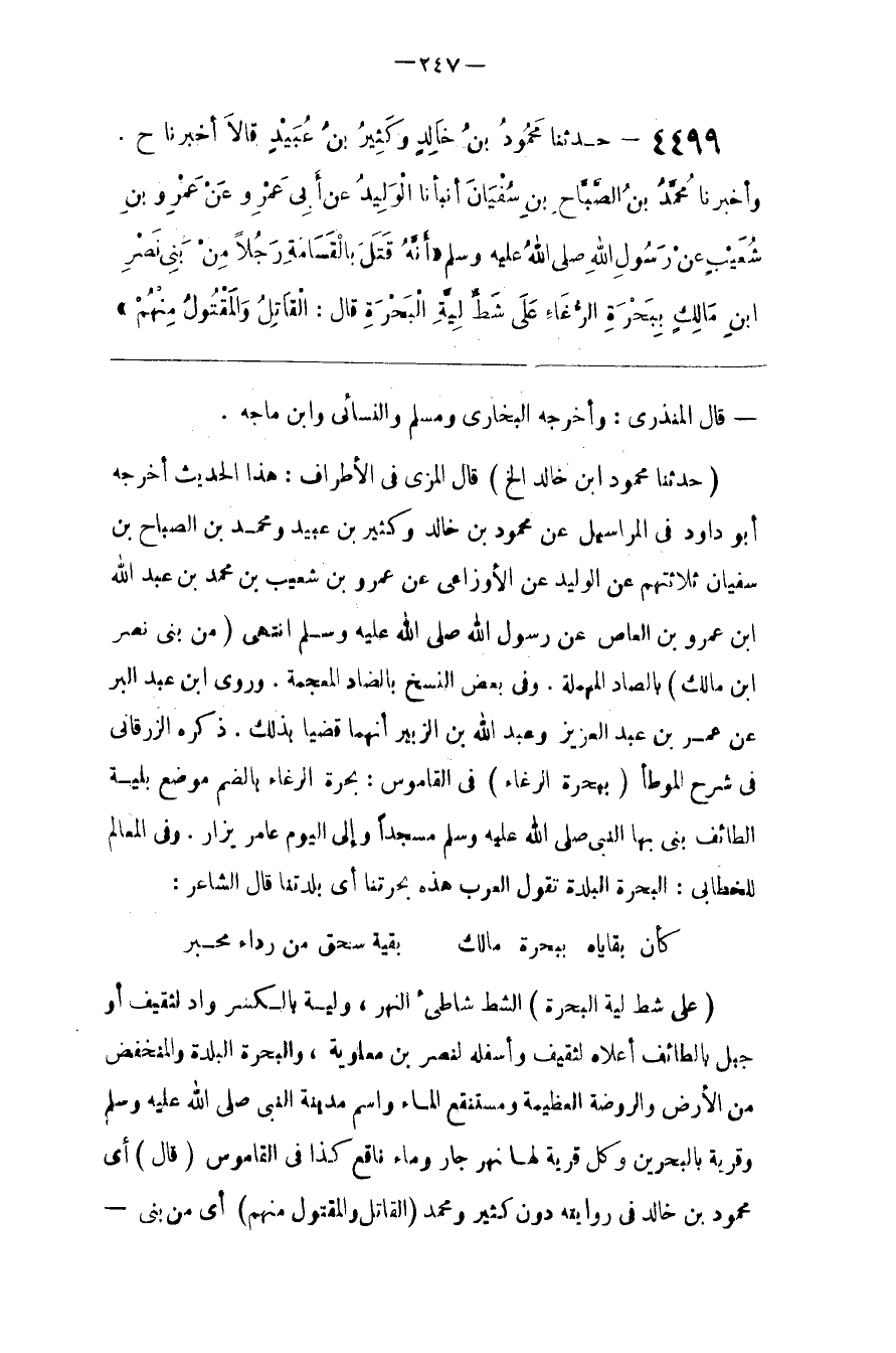 : فِي الْقَامُوس : بَحْرَة الرُّغَاء بِالضَّمِّ مَوْضِع بَلِيَّة الطَّائِف بَنَى بِهِمَا النَّبِيّ صَلَّى اللَّه عَلَيْهِ وَسَلَّمَ مَسْجِدًا وَإِلَى الْيَوْم عَامِر يُزَار . وَفِي الْمَعَالِم لِلْخَطَّابِيّ : الْبَحْرَة الْبَلْدَة تَقُول الْعَرَب هَذِهِ بَحْرَتنَا أَيْ بَلْدَتنَا قَالَ الشَّاعِر : كَأَنَّ بَقَايَاهُ بِبَحْرَةِ مَالِك بَقِيَّة سُحْق مِنْ رِدَاء مُحَبَّر