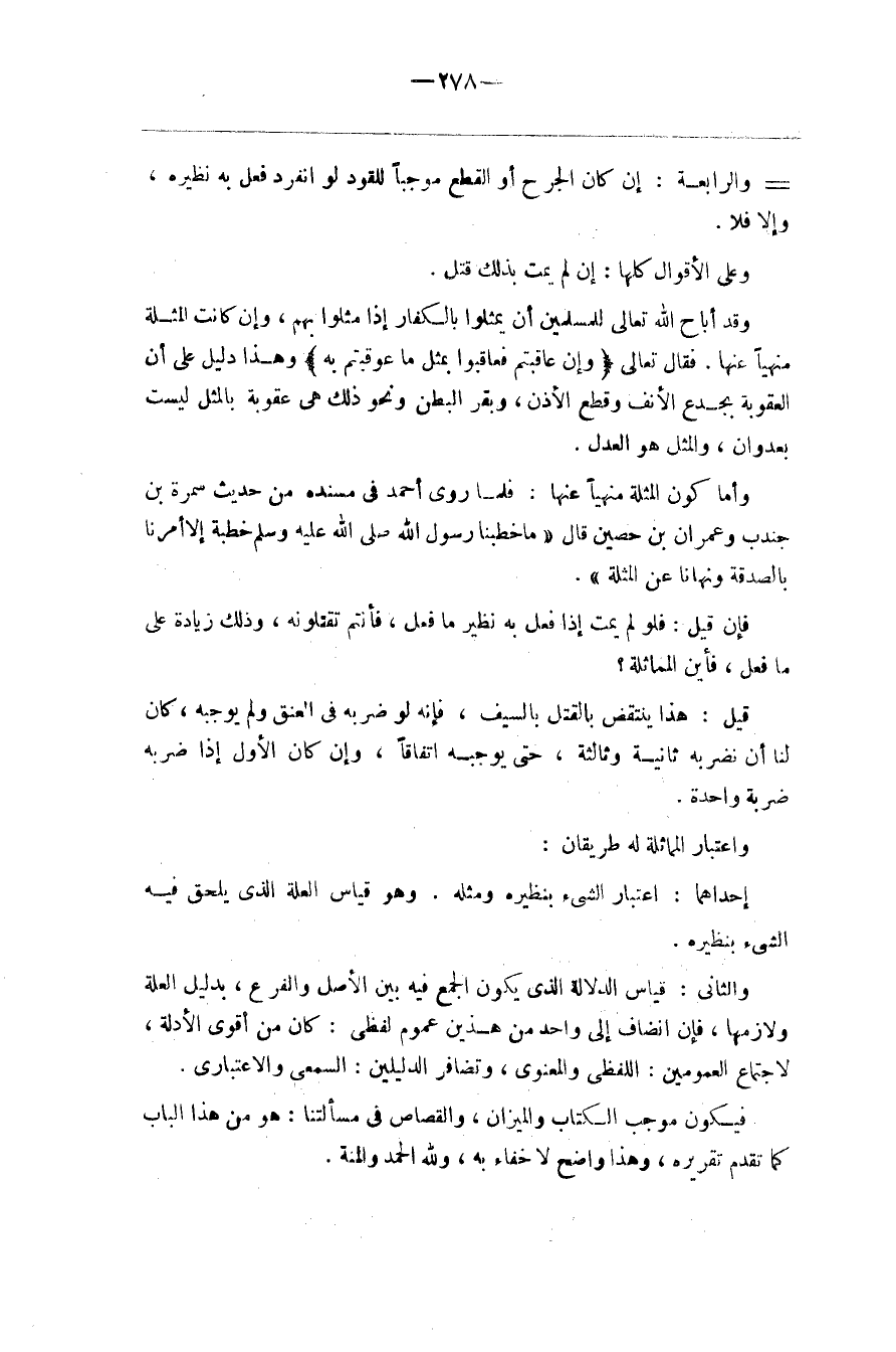 فيكون موجب الكتاب والميزان والقصاص في مسألتنا هو من هذا الباب كما تقدم تقريره وهذا واضح لا خفاء به ولله الحمد والمنة