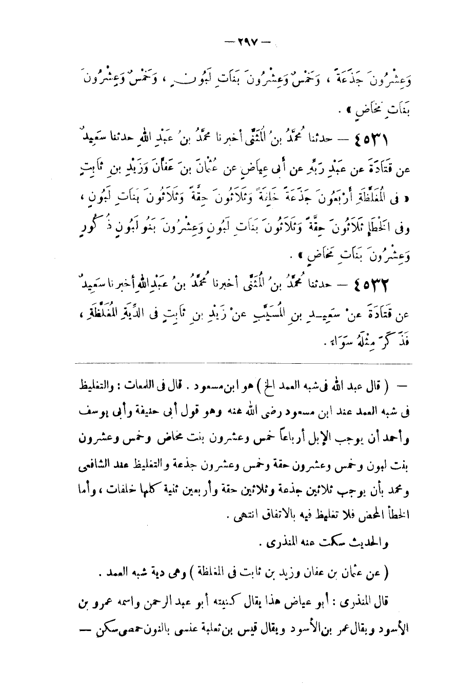 ( عَنْ عُثْمَان بْن عَفَّانَ وَزَيْد بْن ثَابِت فِي الْمُغَلَّظَة )