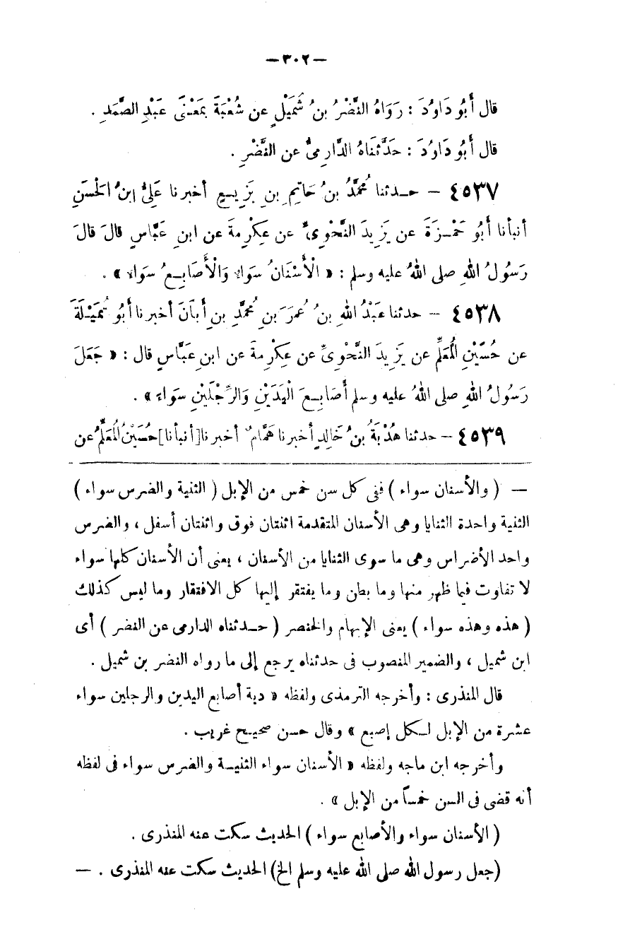 قَالَ الْمُنْذِرِيُّ : وَأَخْرَجَهُ التِّرْمِذِيّ وَلَفْظه " دِيَة أَصَابِع الْيَدَيْنِ وَالرِّجْلَيْنِ سَوَاء عَشْرَة مِنْ الْإِبِل لِكُلِّ أُصْبُع " وَقَالَ حَسَن صَحِيح غَرِيب .