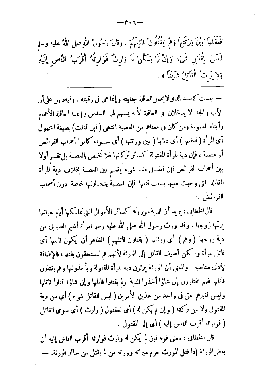 قَالَ الْخَطَّابِيُّ : يُرِيد أَنَّ الدِّيَة مَوْرُوثَة كَسَائِرِ الْأَمْوَال الَّتِي تَمْلِكهَا أَيَّام حَيَاتهَا يَرِثهَا زَوْجهَا . وَقَدْ وَرِثَ رَسُول اللَّه صَلَّى اللَّه عَلَيْهِ وَسَلَّمَ اِمْرَأَة أَشْيَم الضِّبَابِيّ مِنْ دِيَة زَوْجهَا