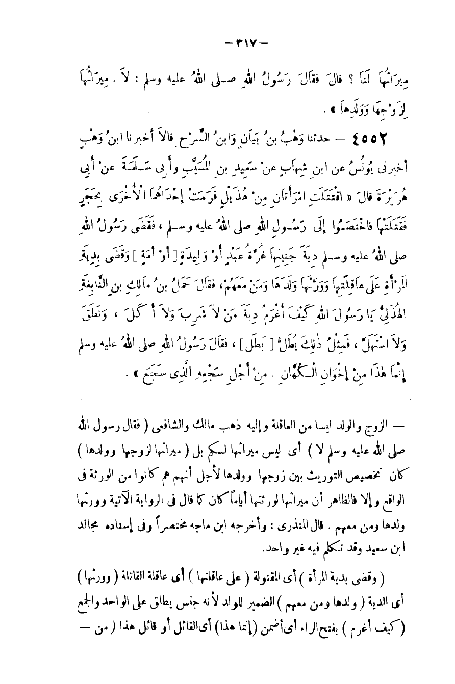 ( مِيرَاثهَا لِزَوْجِهَا وَوَلَدهَا )