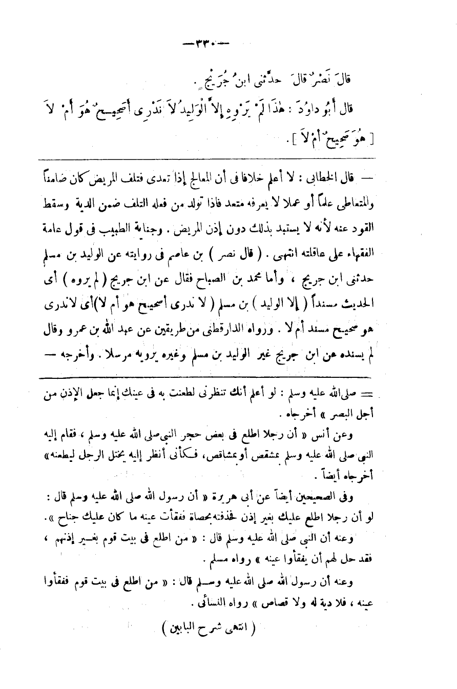 وعنه أن النبي صلى الله عليه و سلم قال من اطلع في بيت قوم بغير إذنهم فقد حل لهم أن يفقأوا عينه رواه مسلم