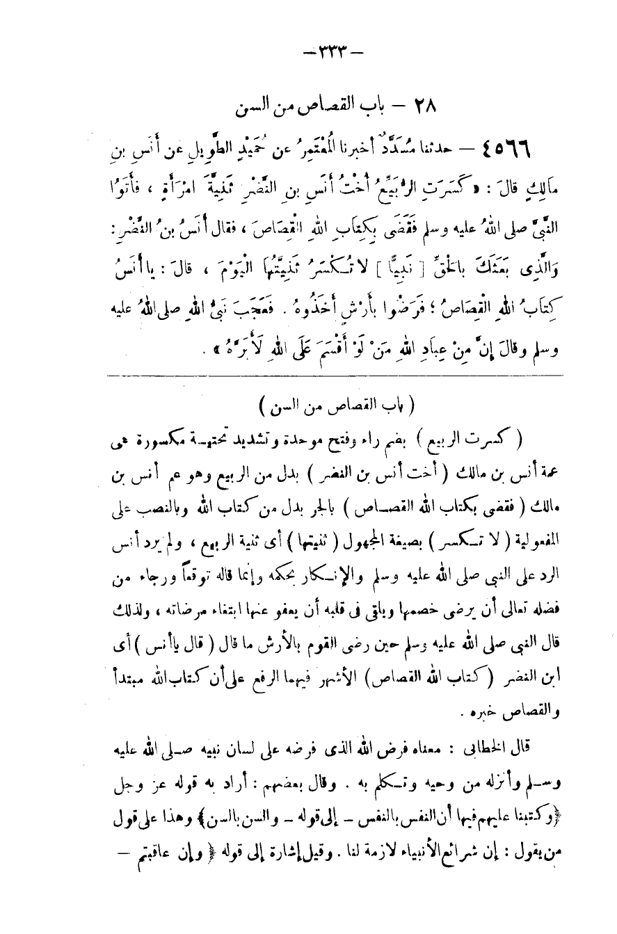 ( فَقَضَى بِكِتَابِ اللَّه الْقِصَاص )