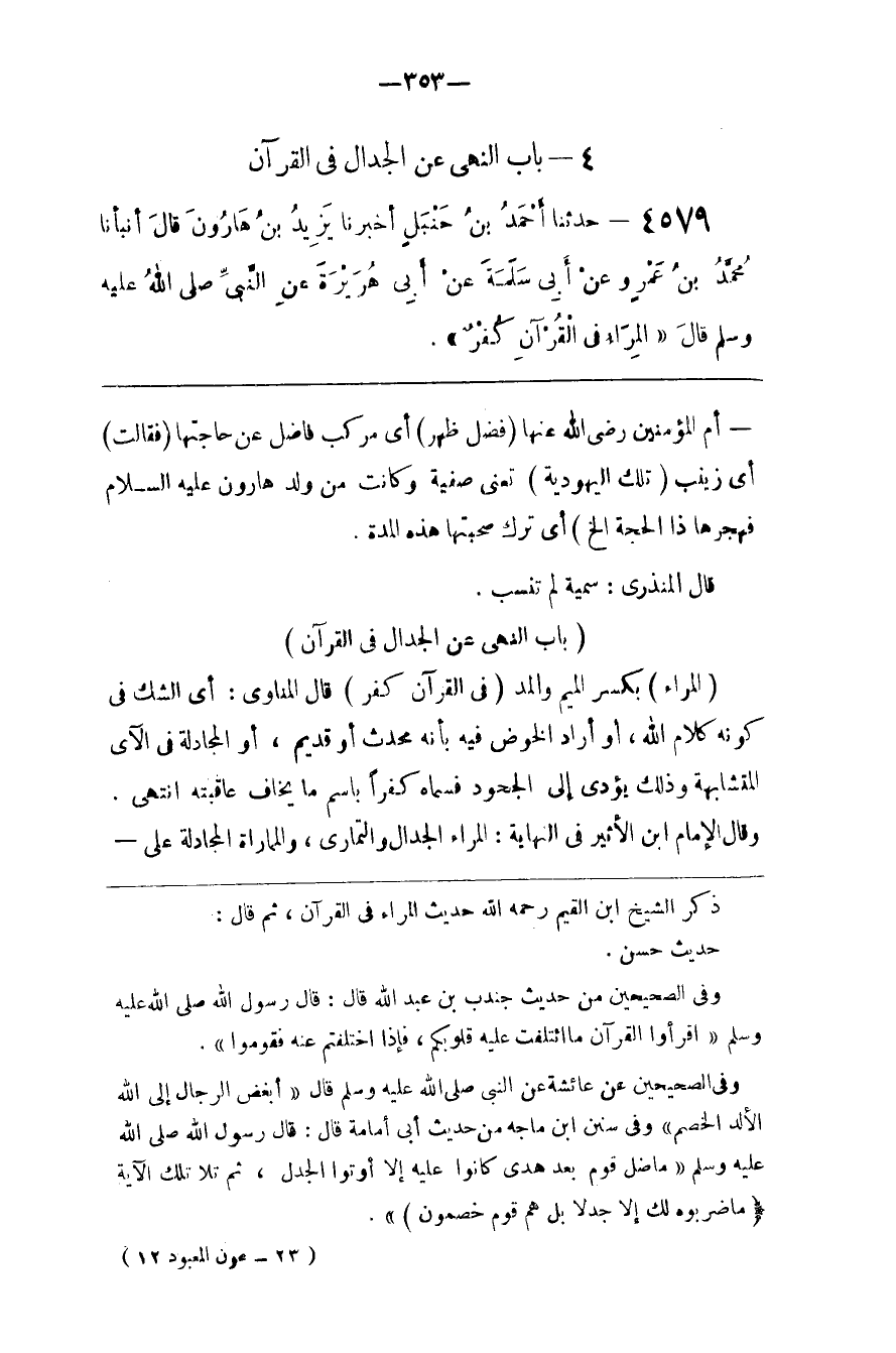 ذكر الشيخ ابن القيم رحمه الله حديث المراء في القرآن ثم قال حديث حسن