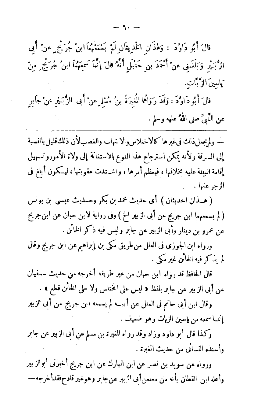وَرَوَاهُ عَنْ سُوَيْد بْن نَصْر عَنْ اِبْن الْمُبَارَك عَنْ اِبْن جُرَيْجٍ أَخْبَرَنِي أَبُو الزُّبَيْر وَأَعَلَّهُ اِبْن الْقَطَّان بِأَنَّهُ مِنْ مُعَنْعَن أَبِي الزُّبَيْر عَنْ جَابِر وَهُوَ غَيْر قَادِح فَقَدْ أَخْرَجَهُ@