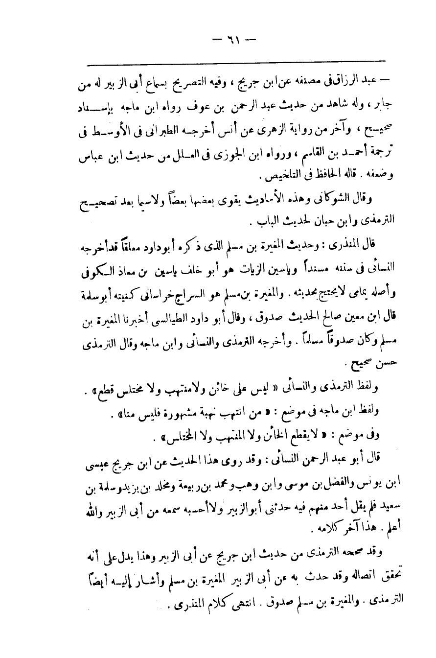 وَقَدْ صَحَّحَهُ التِّرْمِذِيّ مِنْ حَدِيث اِبْن جُرَيْجٍ عَنْ أَبِي الزُّبَيْر وَهَذَا يَدُلّ عَلَى أَنَّهُ تَحَقَّقَ اِتِّصَاله وَقَدْ حَدَّثَ بِهِ عَنْ أَبِي الزُّبَيْر الْمُغِيرَة بْن مُسْلِم وَأَشَارَ إِلَيْهِ أَيْضًا التِّرْمِذِيّ . وَالْمُغِيرَة بْن مُسْلِم صَدُوق . اِنْتَهَى كَلَام الْمُنْذِرِيّ .@