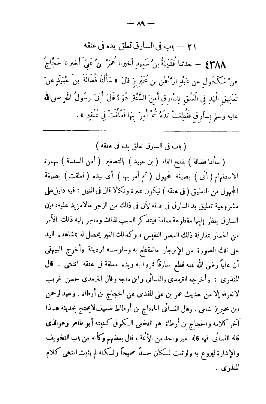 قَالَ الْمُنْذِرِيّ : وَأَخْرَجَهُ التِّرْمِذِيّ وَالنَّسَائِيُّ وَابْن مَاجَهْ وَقَالَ التِّرْمِذِيّ حَسَن غَرِيب لَا نَعْرِفهُ إِلَّا مِنْ حَدِيث عُمَر بْن عَلِيّ الْمُقَدِّمِيّ عَنْ الْحَجَّاج بْن أَرْطَاةَ . وَعَبْد الرَّحْمَن بْن مُحَيْرِيز شَامِيّ . وَقَالَ النَّسَائِيُّ الْحَجَّاج بْن أَرْطَاةَ ضَعِيف لَا يُحْتَجّ بِحَدِيثِهِ هَذَا آخِر كَلَامه وَالْحَجَّاج اِبْن أَرْطَاةَ هُوَ النَّخَعِيُّ الْكُوفِيّ كُنْيَته أَبُو طَاهِر وَهَذَا الَّذِي قَالَهُ النَّسَائِيُّ فِيهِ قَالَهُ غَيْر وَاحِد مِنْ الْأَئِمَّة ، قَالَ بَعْضهمْ وَكَأَنَّهُ مِنْ بَاب التَّخْوِيف وَالْإِشَارَة لِيُرَوِّع بِهِ وَلَوْ ثَبَتَ لَكَانَ حَسَنًا صَحِيحًا وَلَكِنَّهُ لَمْ يَثْبُت اِنْتَهَى كَلَام الْمُنْذِرِيّ .@