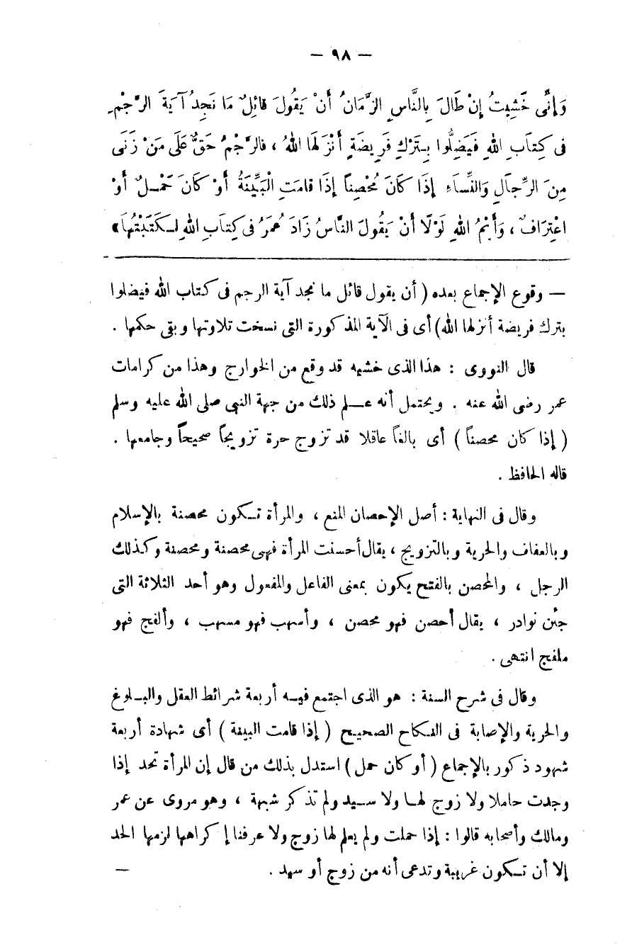 ( أَنْ يَقُول قَائِل مَا نَجِد آيَة الرَّجْم فِي كِتَاب اللَّه فَيَضِلُّوا بِتَرْكِ فَرِيضَة أَنْزَلَهَا اللَّه )