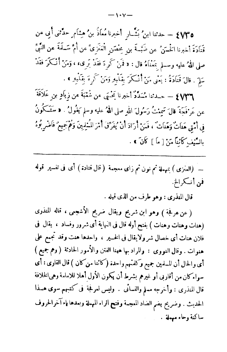 بِفَتْحِ أَوَّله قَالَ فِي النِّهَايَة أَيْ شُرُور وَفَسَاد ، يُقَال فِي فُلَان هَنَات أَيْ خِصَال شَرٍّ وَلَا يُقَال فِي الْخَيْر ، وَاحِدهَا هَنْت وَقَدْ تُجْمَع عَلَى هَنَوَات . وَقَالَ النَّوَوِيّ : وَالْمُرَاد بِهَا هَاهُنَا الْفِتَن وَالْأُمُور الْحَادِثَة