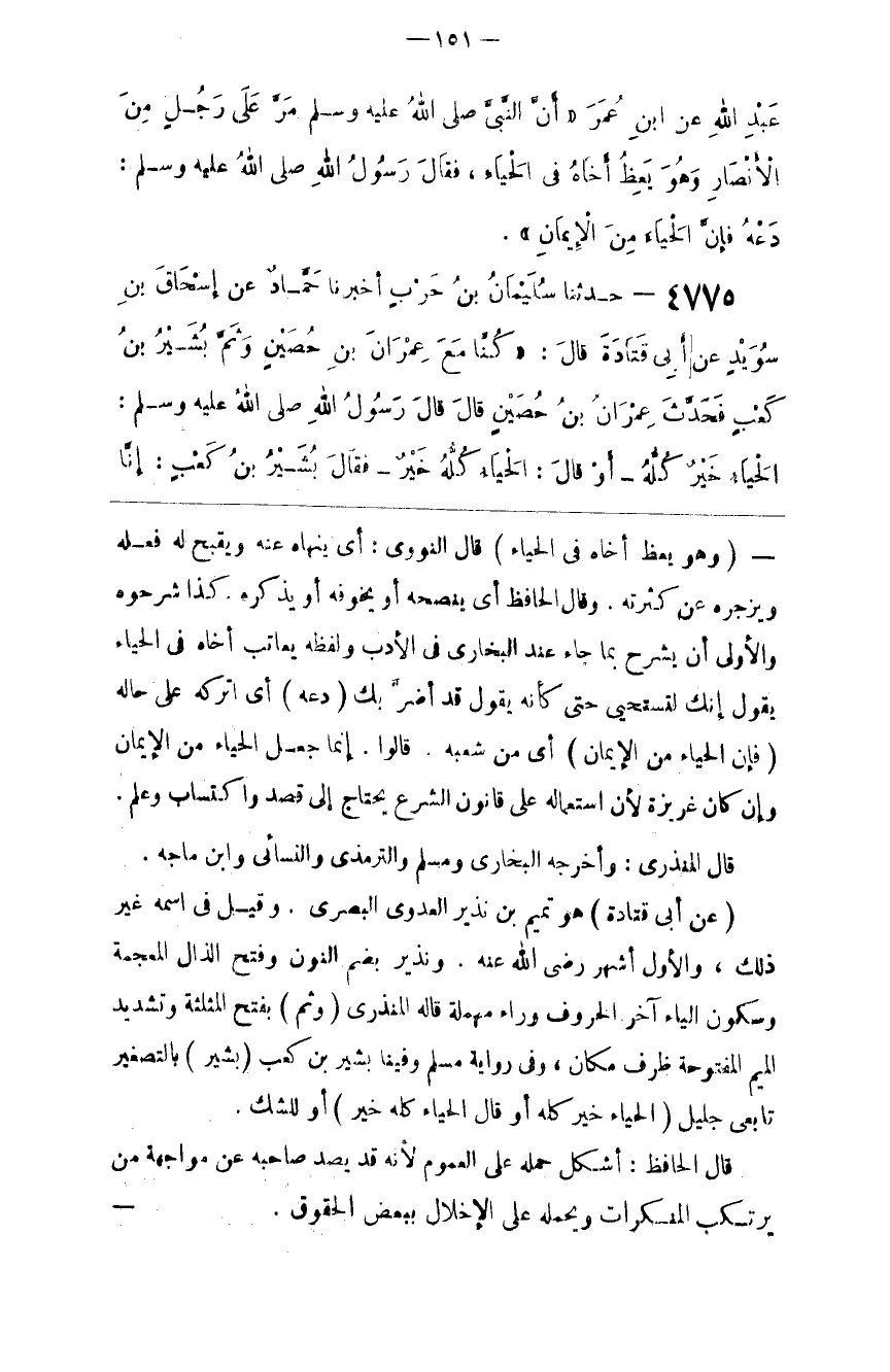 ( الْحَيَاء خَيْر كُلّه أَوْ قَالَ الْحَيَاء كُلّه خَيْر )
