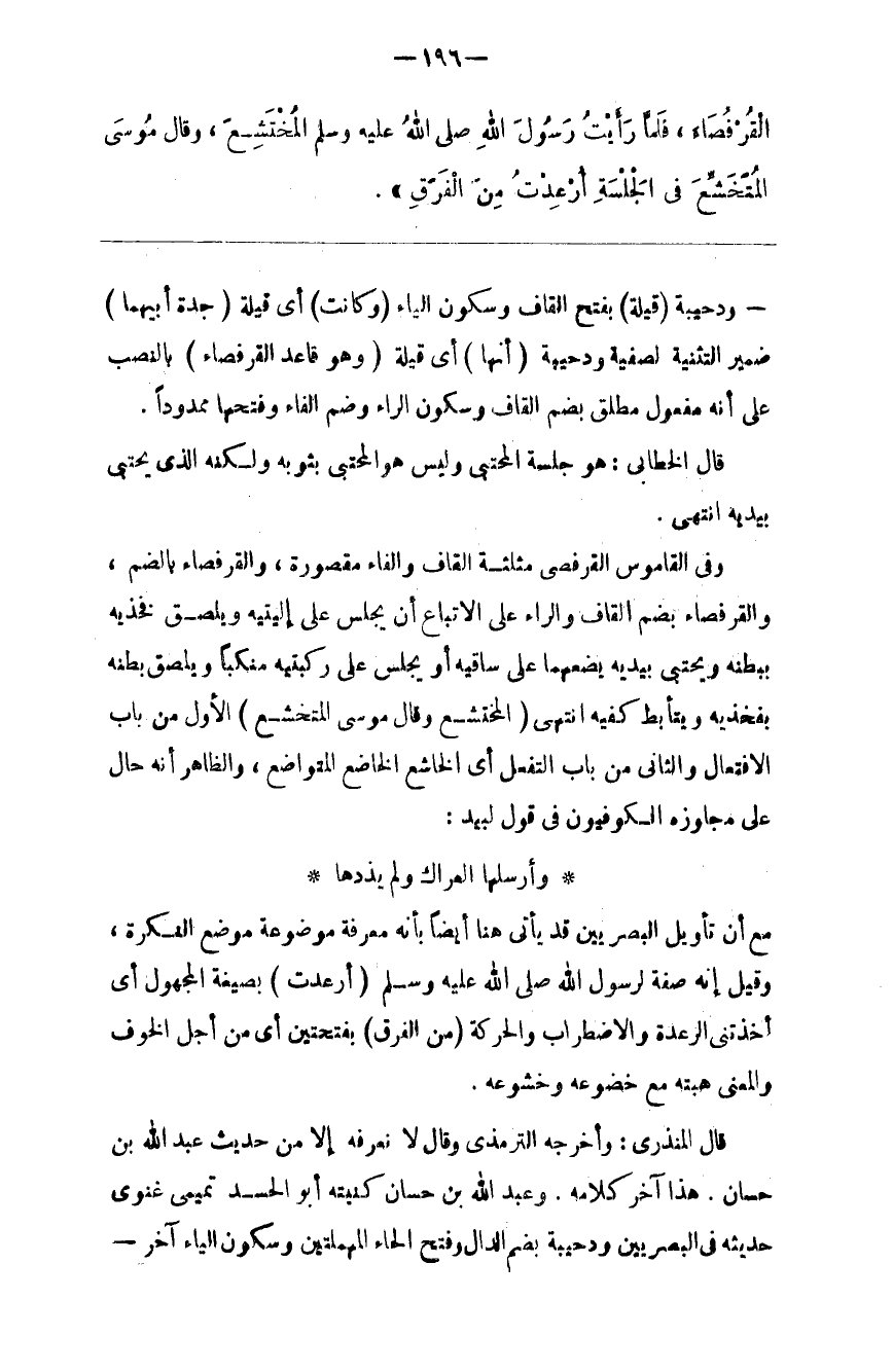 قَالَ الْخَطَّابِيُّ : هُوَ جِلْسَة الْمُحْتَبِي وَلَيْسَ هُوَ الْمُحْتَبِي بِثَوْبِهِ وَلَكِنَّهُ الَّذِي يَحْتَبِي بِيَدَيْهِ اِنْتَهَى .