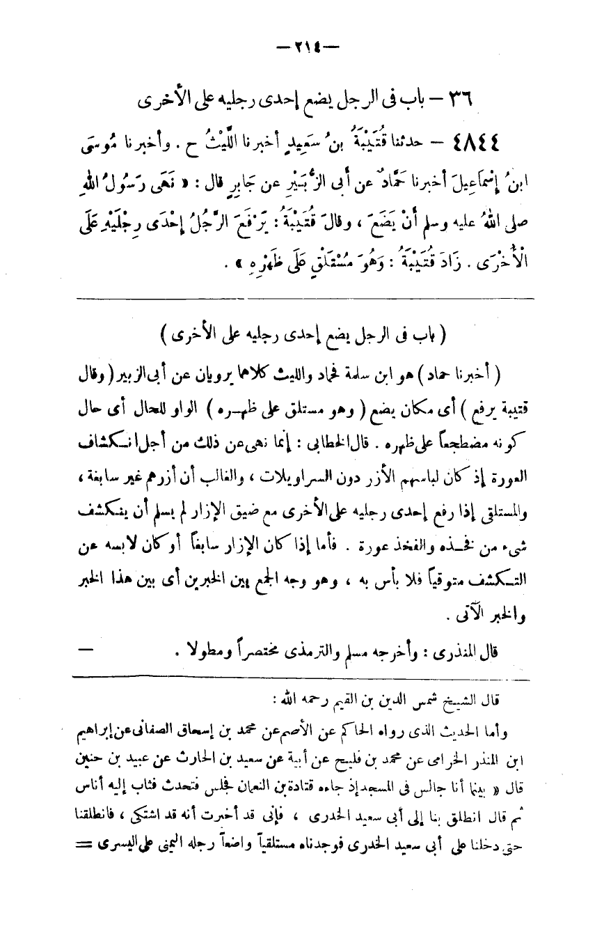 قال الشيخ شمس الدين ابن القيم رحمه الله وأما الحديث الذي رواه الحاكم عن الأصم عن محمد بن إسحاق الصفاني عن إبراهيم ابن المنذر الخرامي عن محمد بن فليح عن أبيه عن سعيد بن الحارث عن عبيد بن حنين قال بينما أنا
