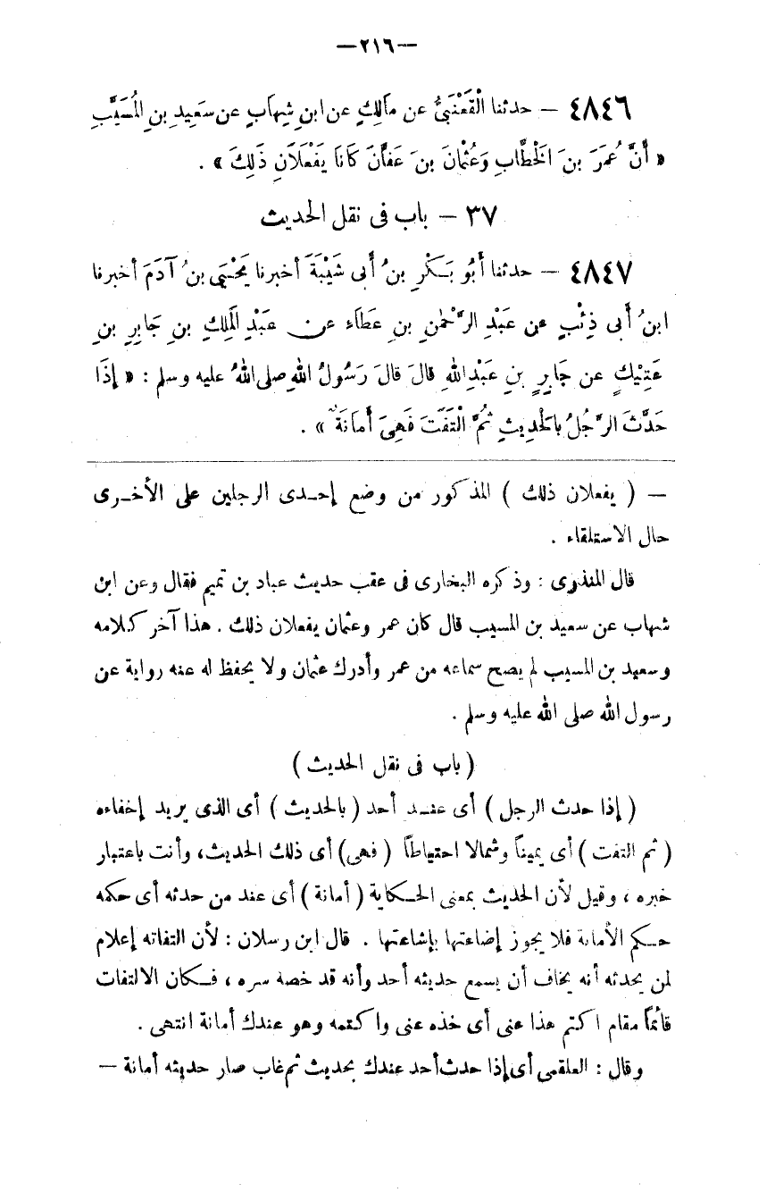 وَقَالَ : الْعَلْقَمِيّ أَيْ إِذَا حَدَّثَ أَحَد عِنْدك بِحَدِيثِ ثُمَّ غَابَ صَارَ حَدِيثه أَمَانَة @