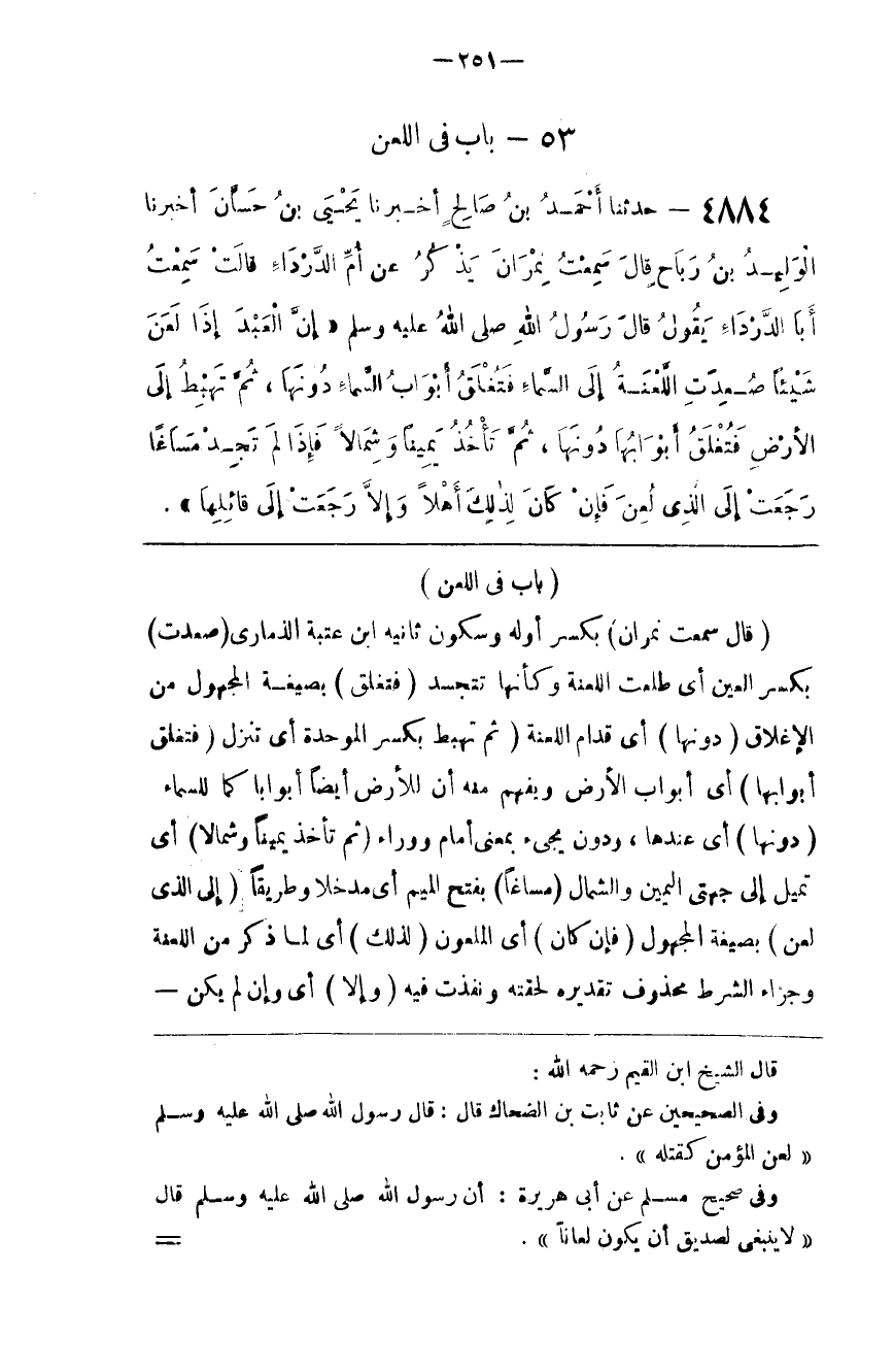 قال الشيخ شمس الدين ابن القيم رحمه الله وفي الصحيحين عن ثابت بن الضحاك قال قال رسول الله صلى الله عليه و سلم لعن المؤمن كقتله