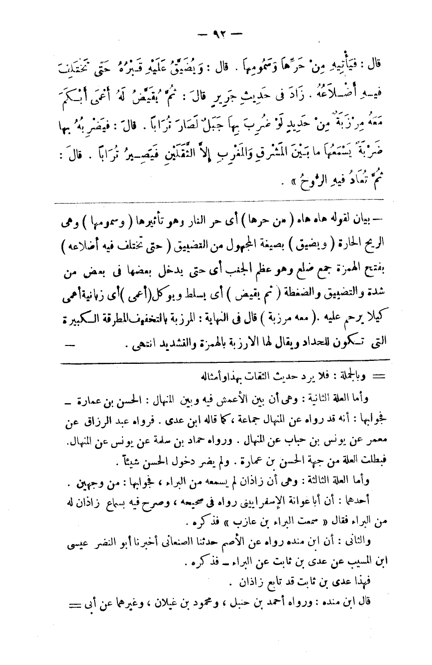 وأما العلة الثانية وهي أن بين الأعمش فيه وبين المنهال الحسن بن عمارة فجوابها أنه قد رواه عن المنهال جماعة كما قاله ابن عدي
