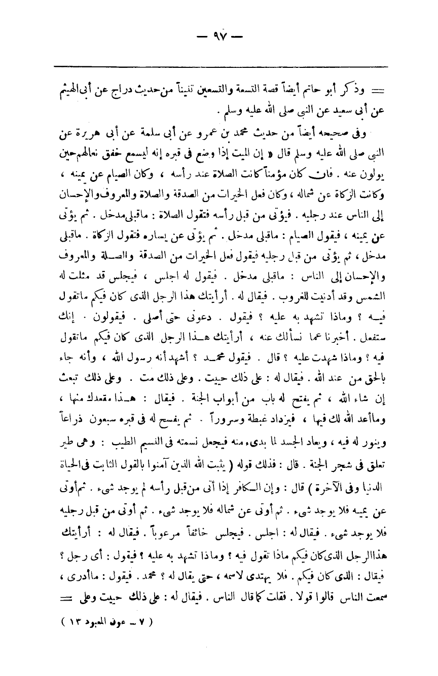 وذكر أبو حاتم أيضا قصة التسعة والتسعين تنينا من حديث دراج عن أبي الهيثم عن أبي سعيد عن النبي صلى الله عليه و سلم