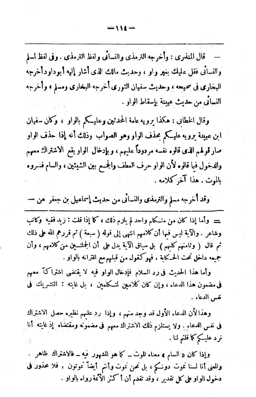وأما هذا الحديث في رد السلام فإدخال الواو فيه لا يقتضي اشتراكا معهم في مضمون هذا الدعاء وإن كان كلامين لمتكلمين بل غايته التشريك في نفس الدعاء