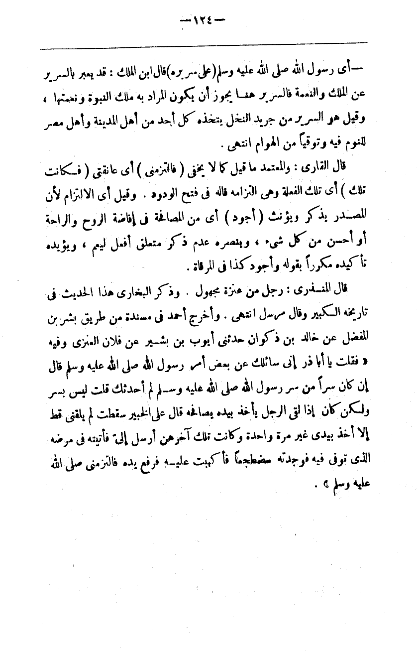 قَالَ الْمُنْذِرِيُّ : رَجُل مِنْ عَنَزَةَ مَجْهُول . وَذَكَرَ الْبُخَارِيّ هَذَا الْحَدِيث فِي تَارِيخه الْكَبِير وَقَالَ مُرْسَل اِنْتَهَى . وَأَخْرَجَ أَحْمَد فِي مُسْنَده مِنْ طَرِيق بِشْر بْن الْمُفَضَّل عَنْ خَالِد بْن ذَكْوَانَ حَدَّثَنِي أَيُّوب بْن بُشَيْر عَنْ فُلَان الْعَنَزِيّ وَفِيهِ " فَقُلْت يَا أَبَا ذَرّ إِنِّي سَائِلُك عَنْ بَعْض أَمْر رَسُول اللَّه صَلَّى اللَّه عَلَيْهِ وَسَلَّمَ قَالَ إِنْ كَانَ سِرًّا مِنْ سِرِّ رَسُولِ اللَّهِ صَلَّى اللَّه عَلَيْهِ وَسَلَّمَ لَمْ أُحَدِّثْك قُلْت لَيْسَ بِسِرٍّ وَلَكِنْ كَانَ إِذَا لَقِيَ الرَّجُل يَأْخُذ بِيَدِهِ يُصَافِحُهُ قَالَ عَلَى الْخَبِيرِ سَقَطْت لَمْ يَلْقَنِي قَطُّ إِلَّا أَخْذ بِيَدِي غَيْرَ مَرَّةً وَاحِدَة وَكَانَتْ تِلْكَ آخِرَهُنَّ أَرْسَلَ إِلَيَّ فَأَتَيْته فِي مَرَضِهِ الَّذِي تُوُفِّيَ فِيهِ فَوَجَدْته مُضْطَجِعًا فَأَكْبَبْت عَلَيْهِ فَرَفَعَ يَده فَالْتَزَمَنِي " .@