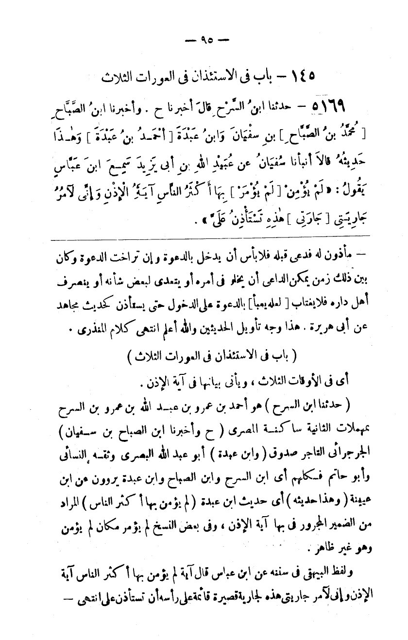وَلَفْظ الْبَيْهَقِيِّ فِي سُنَنِهِ عَنْ اِبْن عَبَّاس قَالَ آيَة لَمْ يُؤْمِنْ بِهَا أَكْثَرُ النَّاس آيَة الْإِذْن وَإِنِّي لَآمُر جَارِيَتِي هَذِهِ لِجَارِيَةِ قَصِيرَة قَائِمَة عَلَى رَأْسِهِ أَنْ تَسْتَأْذِنَ عَلَيَّ اِنْتَهَى@