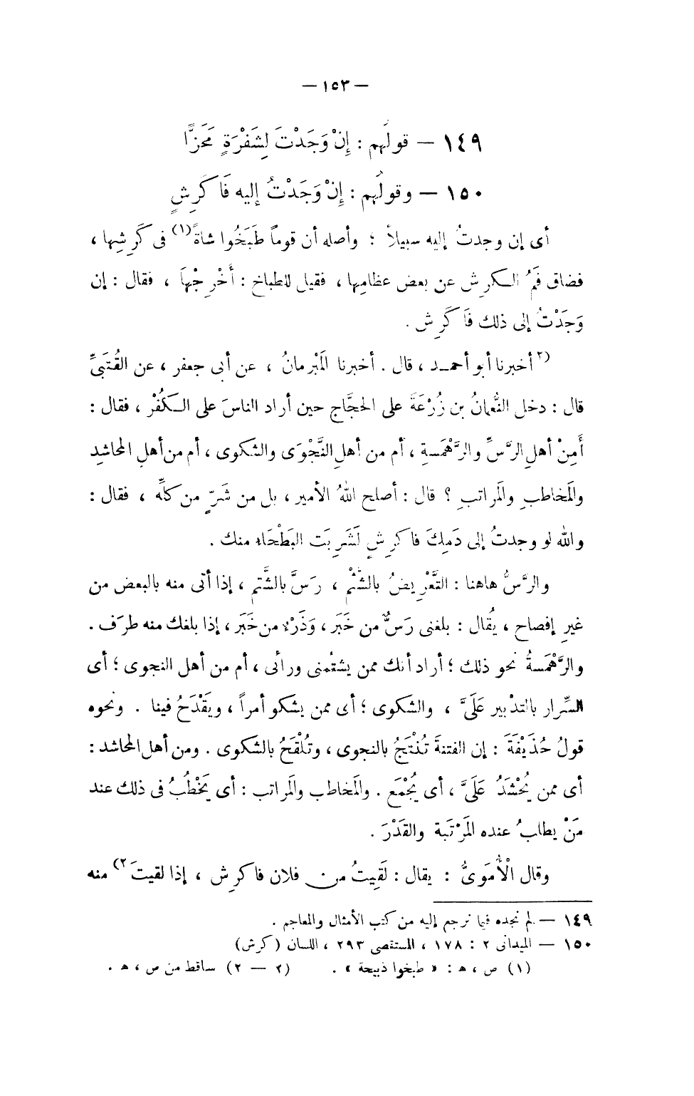 150 - وَقَوْلهمْ إِن وجدت إِلَيْهِ فاكرش