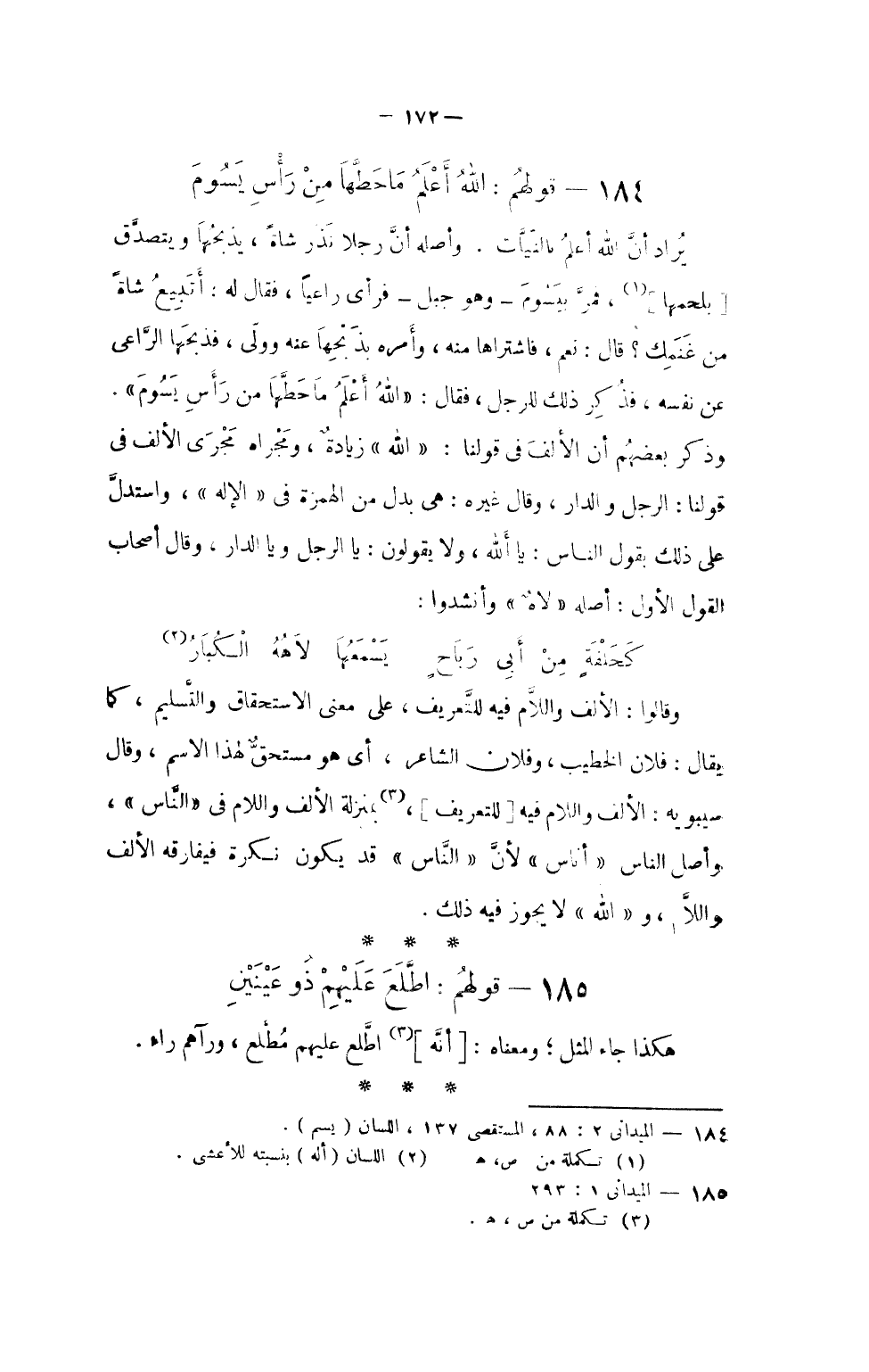 وَقَالُوا الْألف وَاللَّام فِيهِ للتعريف على معنى الِاسْتِحْقَاق وَالتَّسْلِيم كَمَا يُقَال فلَان الْخَطِيب وَفُلَان الشَّاعِر أَي هُوَ مُسْتَحقّ لهَذَا الِاسْم وَقَالَ سِيبَوَيْهٍ الْألف وَاللَّام فِيهِ للتعريف بِمَنْزِلَة الْألف وَاللَّام فِي (النَّاس) وأصل النَّاس (أنَاس) لِأَن (النَّاس) قد يكون نكرَة فيفارقه الْألف واللا و (الله) لَا يجوز فِيهِ ذَلِك