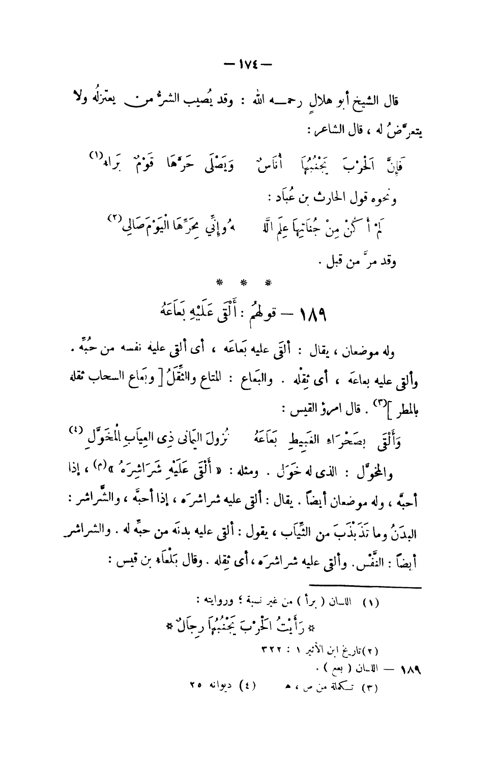 189 - قَوْلهم ألْقى عَلَيْهِ بعاعه