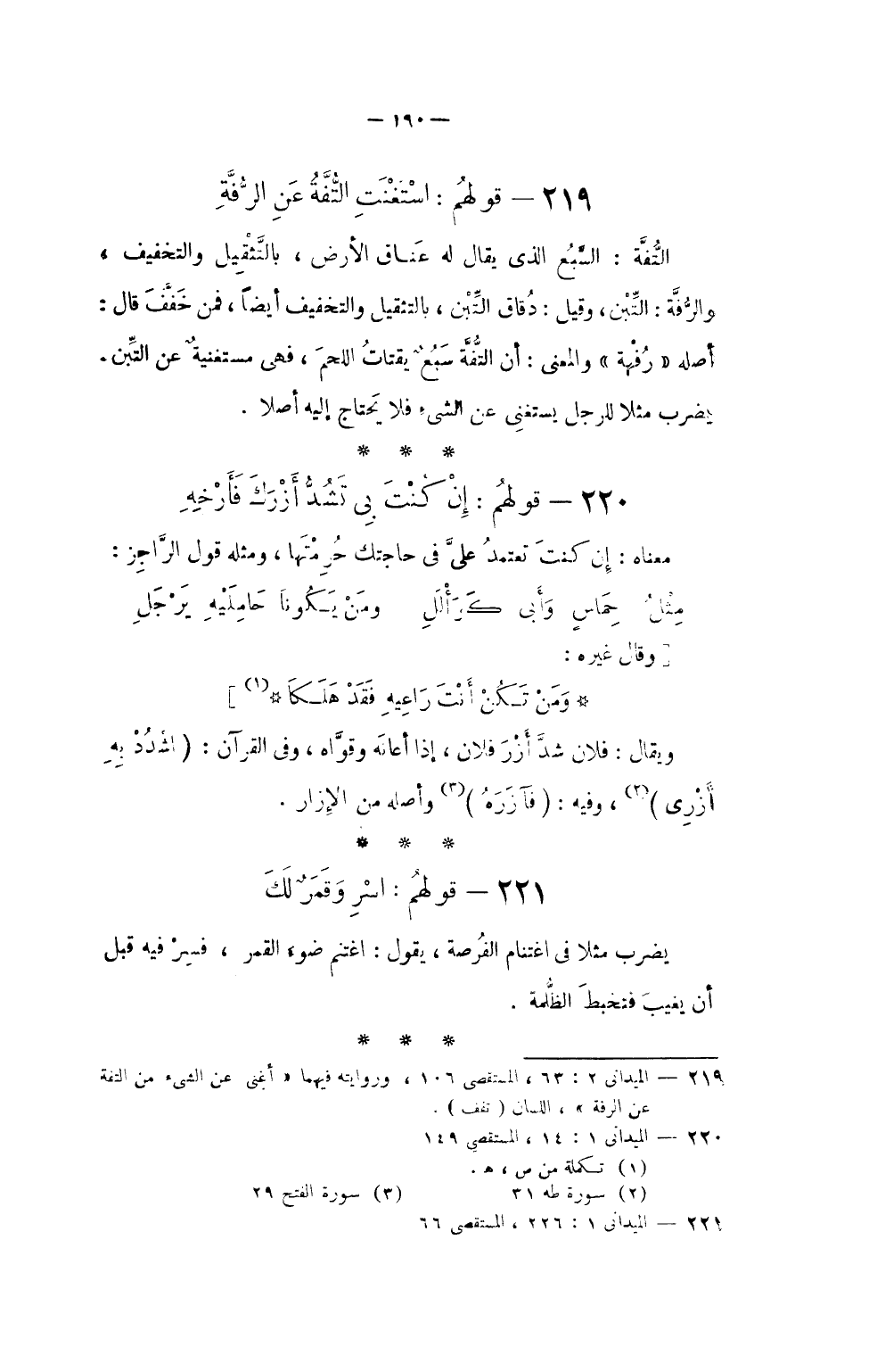 219 - قَوْلهم استغنت التفة عَن الرفة