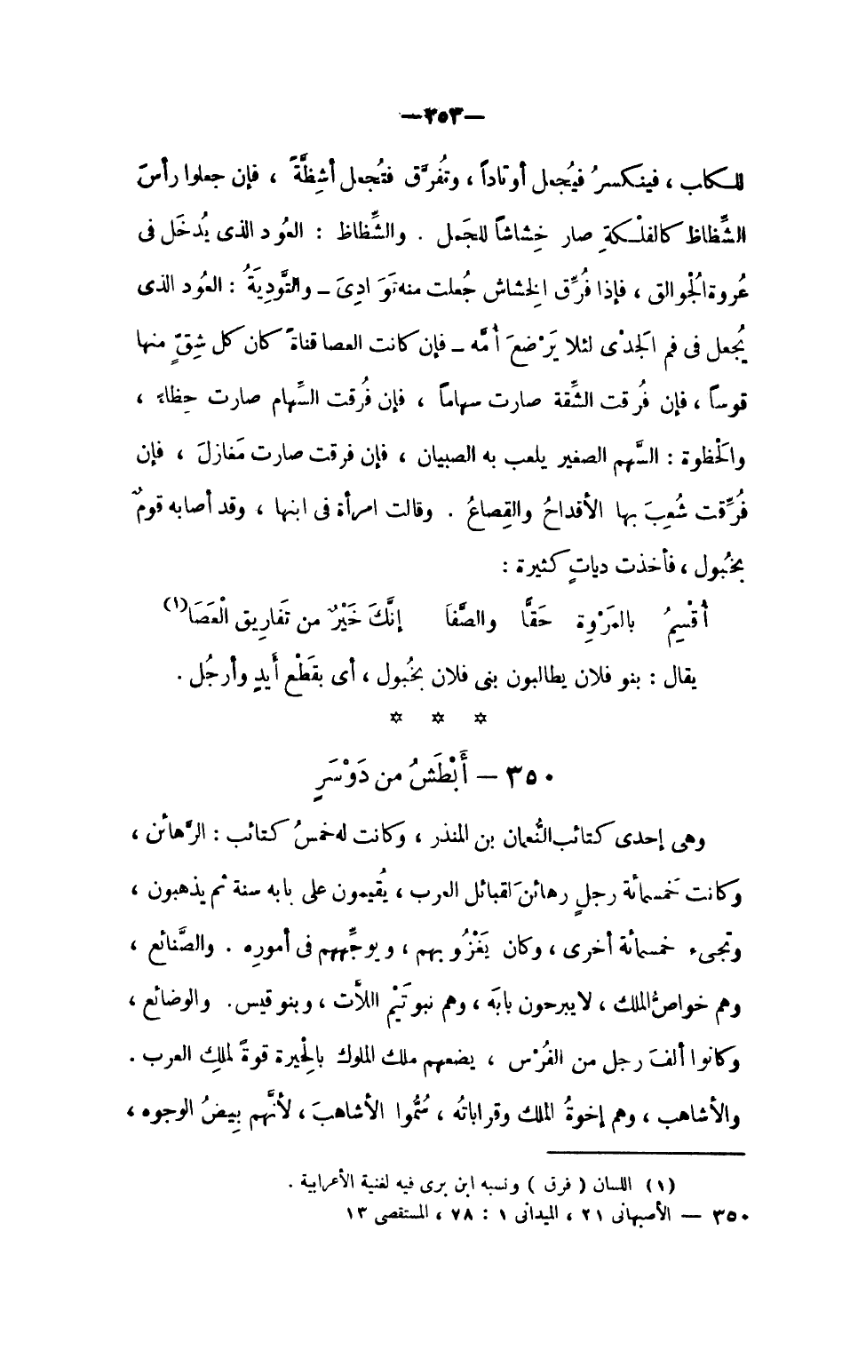 والشظاظ الْعود الَّذِي يدْخل فِي عُرْوَة الجوالق فَإِذا فرق الخشاش جعلت مِنْهُ توادي والتودية الْعود الَّذِي يَجْعَل فِي فَم الجدي لِئَلَّا يرضع أمه فَإِن كَانَت الْعَصَا قناةً كَانَ كل شقّ مِنْهَا قوساً فَإِن فرقت الشقة صَارَت سهاماً فَإِن فرقت السِّهَام صَارَت حظاءً والحظوة السهْم الصَّغِير يلْعَب بِهِ الصّبيان فَإِن فرقت صَارَت مغازل فَإِن فرقت شعب بهَا الأقداح والقصاع