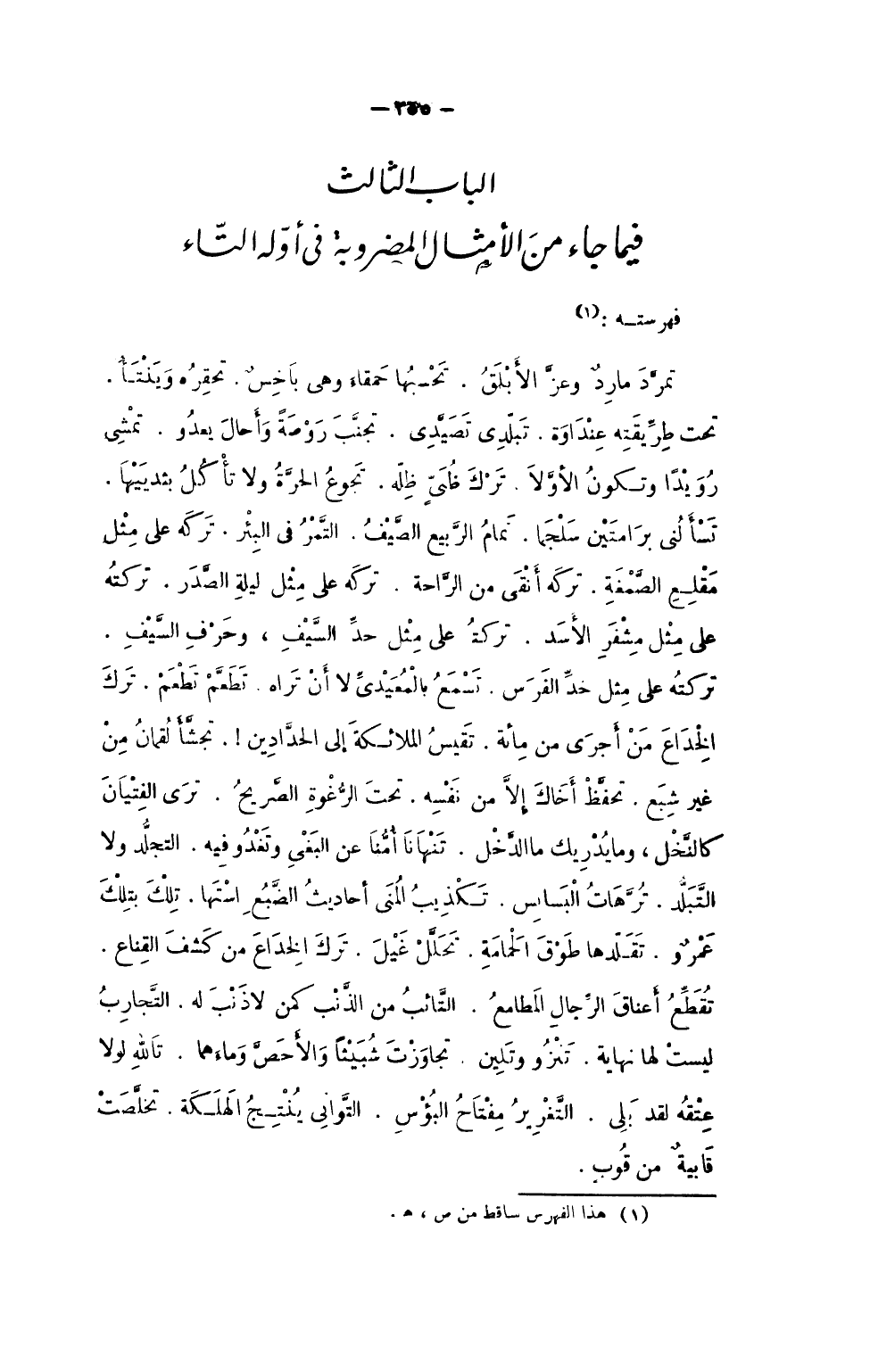 الْبَاب الثَّالِث فِيمَا جَاءَ من الْأَمْثَال المضروبة فِي أَوله التَّاء