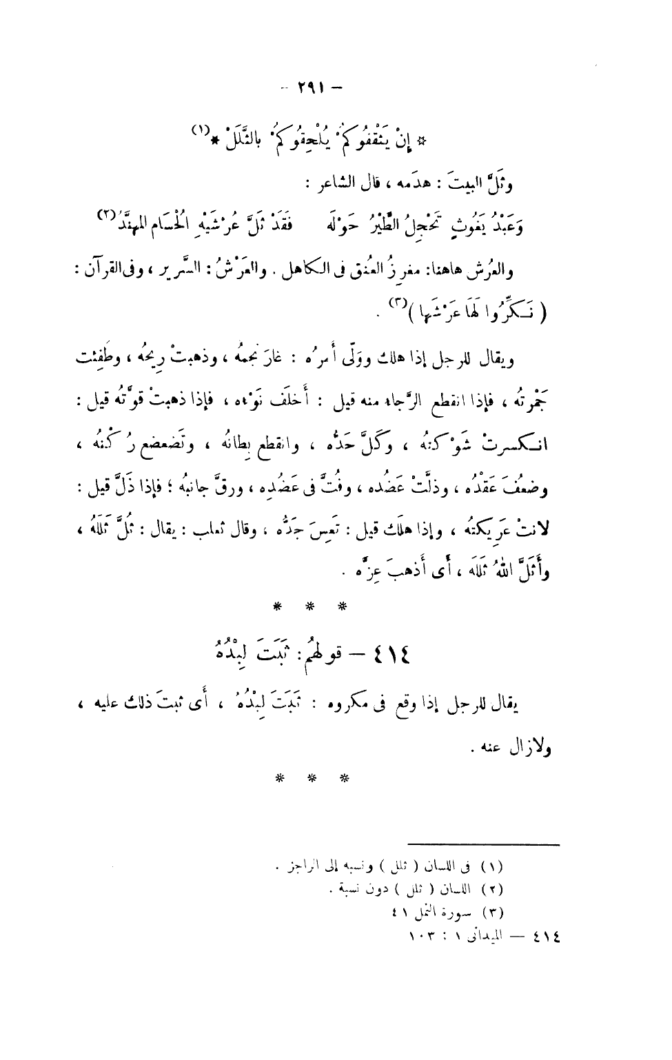 414 - قَوْلهم ثَبت لبده