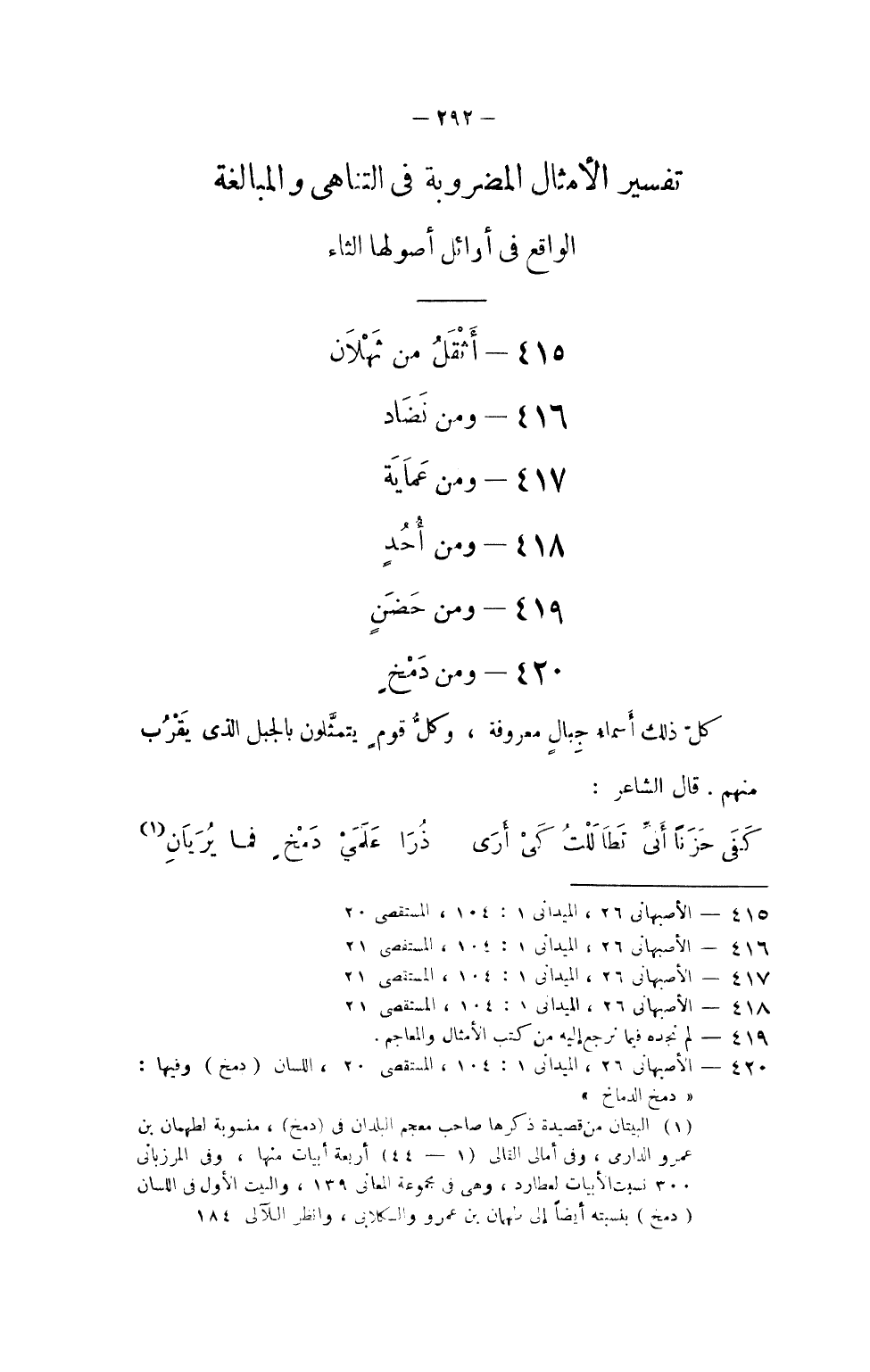 تَفْسِير الْأَمْثَال المضروبة فِي التناهي وَالْمُبَالغَة الْوَاقِع فِي أَوَائِل أُصُولهَا الثَّاء