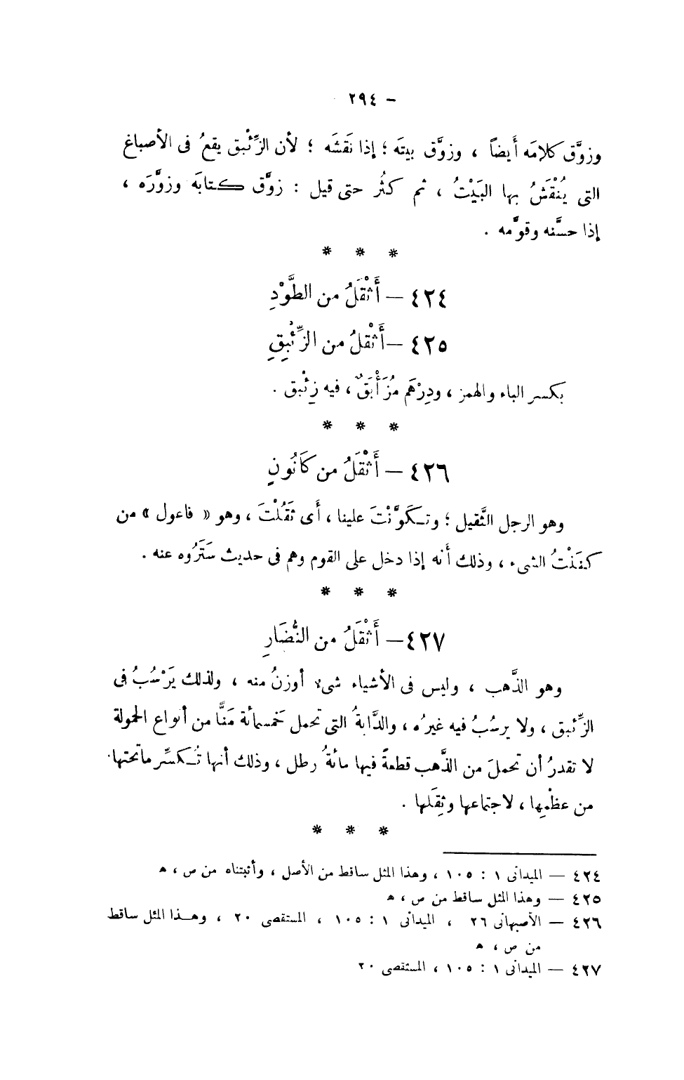 وَهُوَ الذَّهَب وَلَيْسَ فِي الْأَشْيَاء شَيْء أوزن مِنْهُ وَلذَلِك يرسب فِي الزئبق وَلَا يرسب فِيهِ غَيره وَالدَّابَّة الَّتِي تحمل خَمْسمِائَة منا من انواع الحمولة لَا تقدر ان تحمل من الذَّهَب قِطْعَة فِيهَا مائَة رَطْل وَذَلِكَ أَنَّهَا تكسر مَا تحتهَا من عظمها لاجتماعها وثقلها