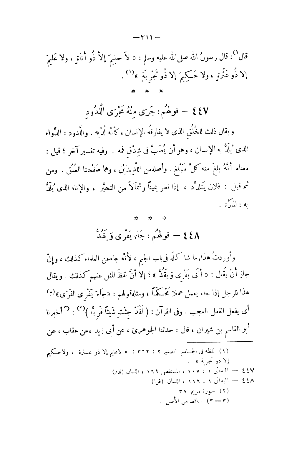 447 - قَوْلهم جرى مِنْهُ مجْرى اللدود